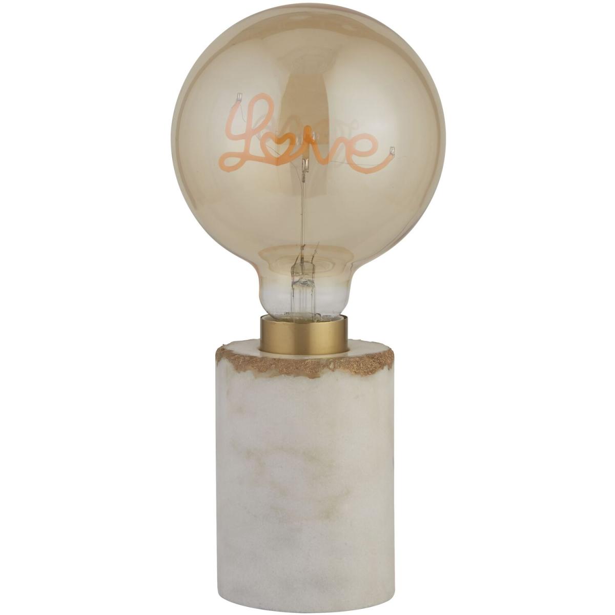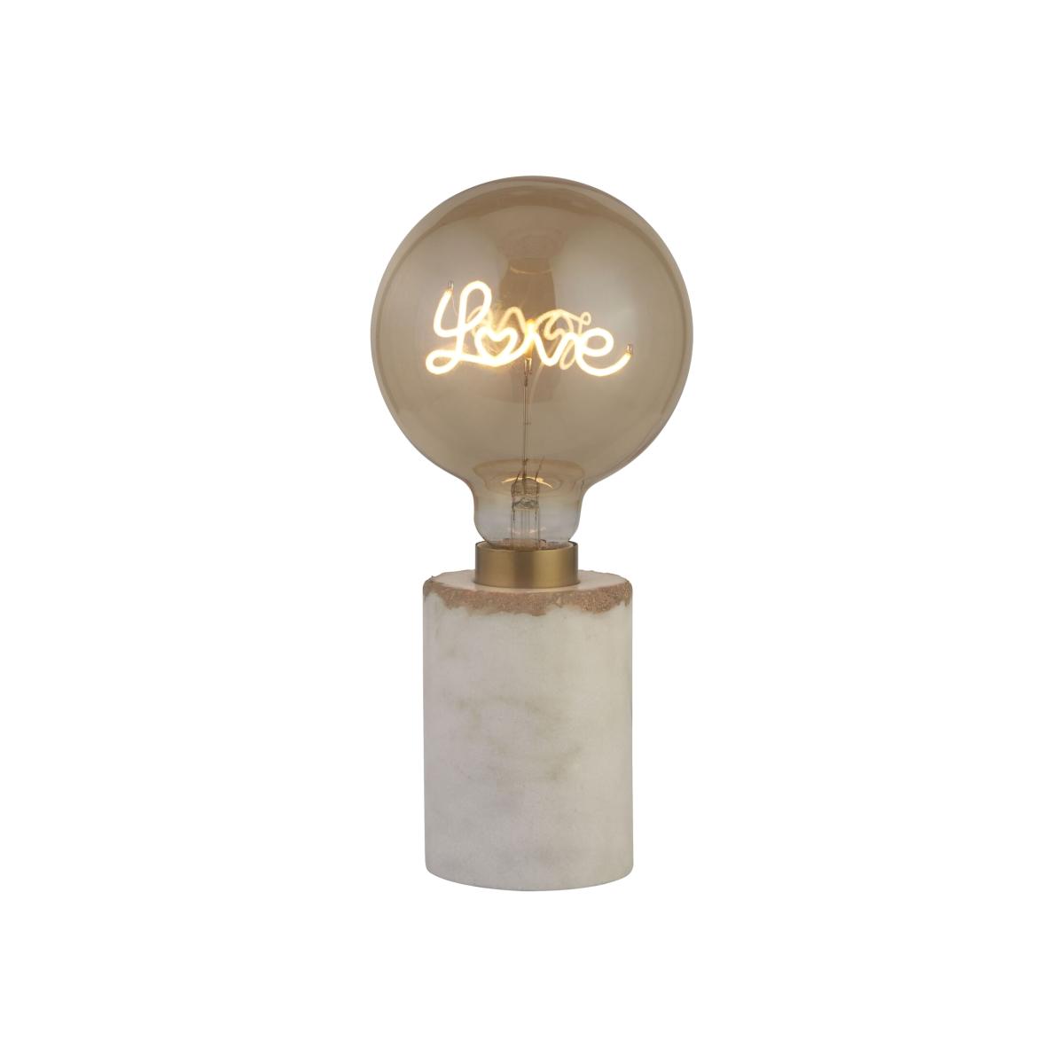This unique table lamp will be a statement feature for any room. The light marble base will suit any decor, and the amber glass LED filament bulb
