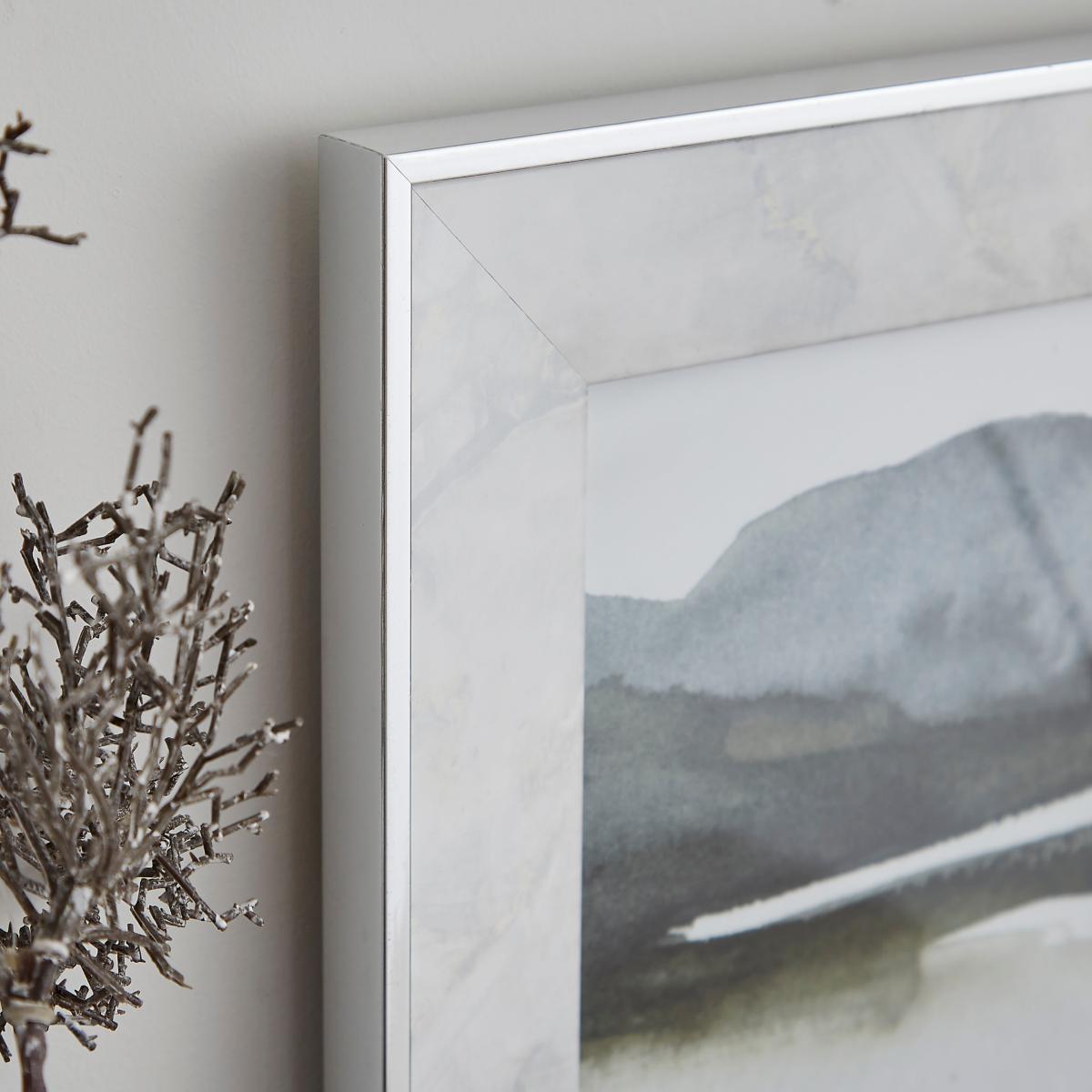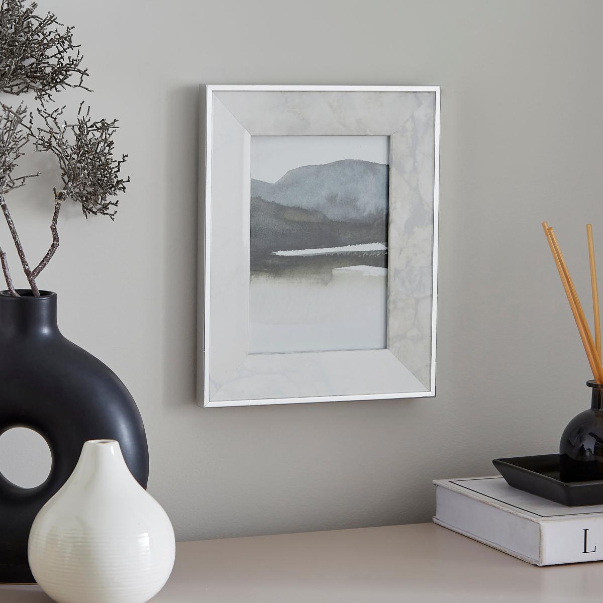 I love this marble effect frame for its clean, contemporary look that effortlessly adds a touch of elegance to any space. Its neutral white tone makes it versatile, working well in both modern and minimalist interiors, as well as more classic schemes when paired with subtle colour palettes. Practical styling tips include using it to display monochrome or soft-hued photographs for a cohesive look, or mixing it with other textured frames to create an inviting gallery wall. Its slim profile ensures it doesn't overpower the image, making it a smart choice for showcasing special memories without cluttering the overall decor.