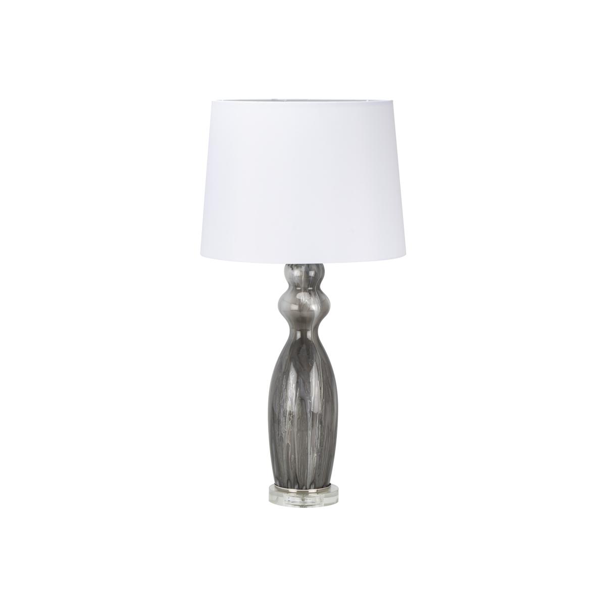 A unique statement lighting feature, this Marble Effect Table Lamp will boldly decorate your bedside table or side unit while bathing your room in bright light. Its sleek, smooth-flowing stand is tinted with a contemporary marble effect, accented with chrome fittings and a pure white shade to seamlessly complement any modern setting.
