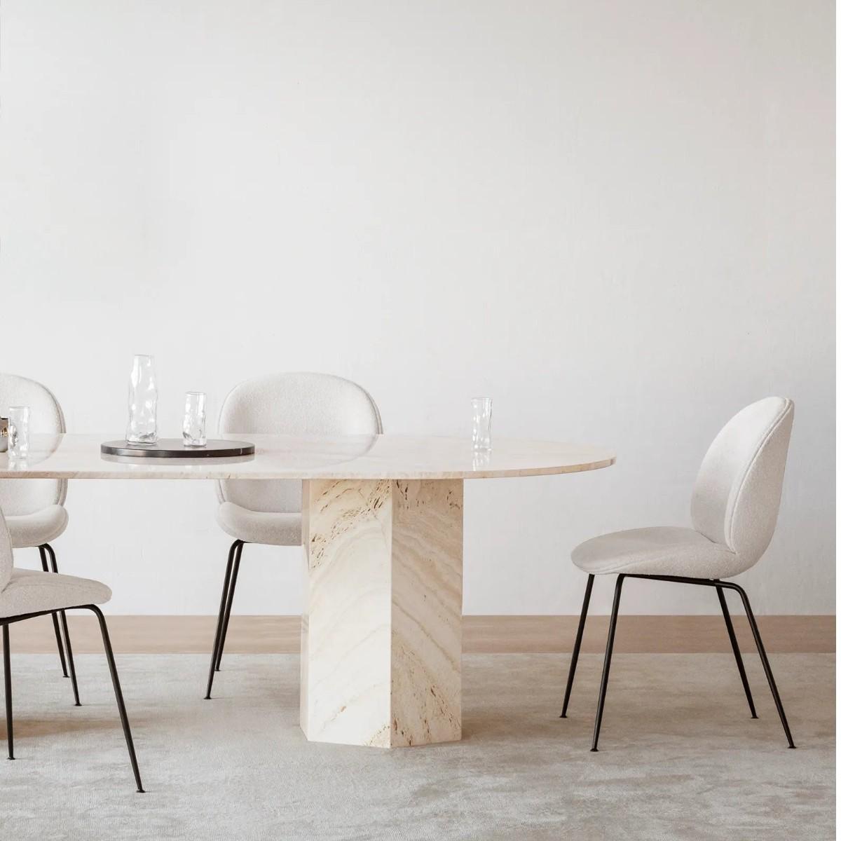 The Ivory Luxe Dining Table, made from premium Travertine marble, exudes effortless elegance. Its smooth surface and subtle tones make it a perfect blend of natural beauty and modern sophistication. Ideal for contemporary spaces, this table enhances your dining experience with its timeless appeal and luxurious presence. Customisation options are offered - contact us for advice choosing the type of marble, the design, and even the dimensions to suit your preferences and space.