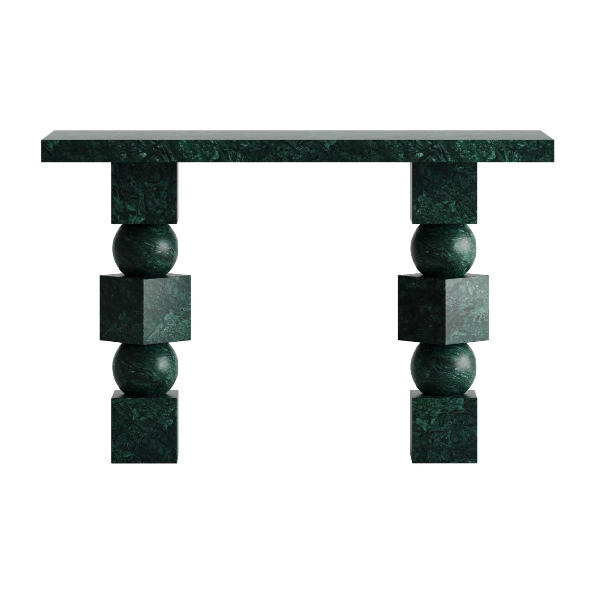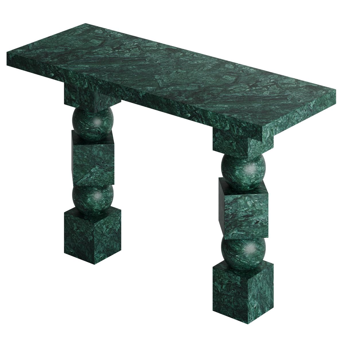 A statement of nature's beauty, the Stage Console Table in Forest Green marble showcases deep green hues with organic veining. Its clean lines contrast beautifully with the stone’s vibrant tones, creating a bold yet refined addition to any interior, perfect for adding a touch of drama and elegance. Customisation options are offered - contact us for advice choosing the type of marble, the design, and even the dimensions to suit your preferences and space.