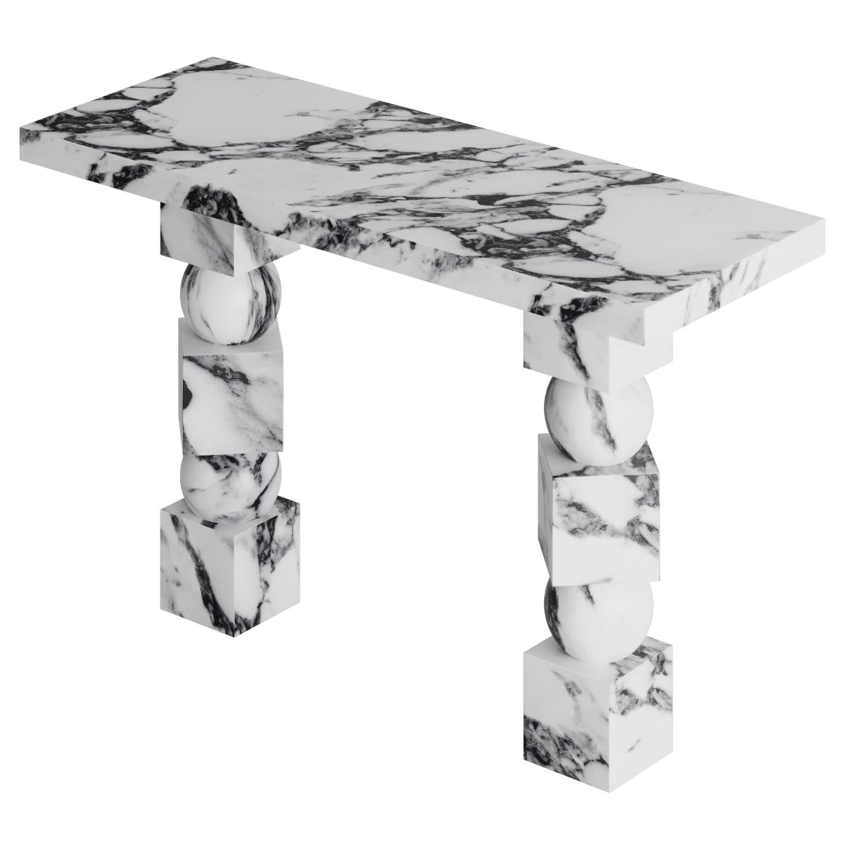 Sleek and bold, the Stage Console Table in Italian White Arasbescato marble features dramatic black tones with striking white veining. Its minimalist design highlights the marble's luxurious texture, making it an elegant focal point for contemporary spaces, blending timeless sophistication with modern appeal. Customisation options are offered - contact us for advice choosing the type of marble, the design, and even the dimensions to suit your preferences and space.