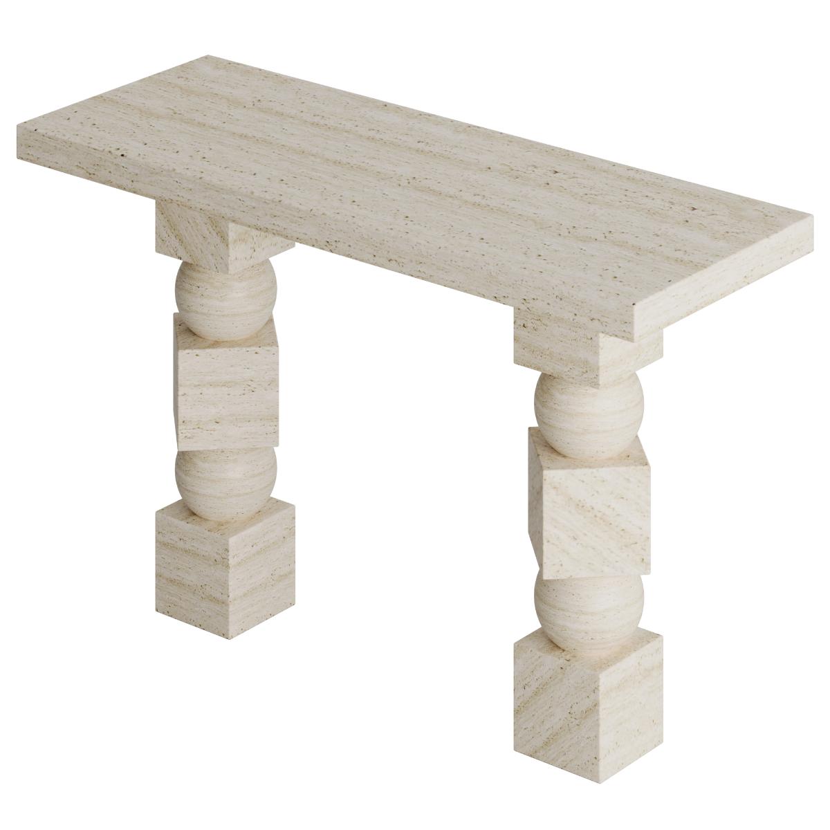 The Stage Console Table in Travertine marble radiates natural warmth and understated elegance. Its earthy tones and subtle textures bring organic charm to interiors, while the table's minimalist form emphasises its timeless appeal. Perfect for creating a serene and sophisticated ambiance in any setting. Customisation options are offered - contact us for advice choosing the type of marble, the design, and even the dimensions to suit your preferences and space.