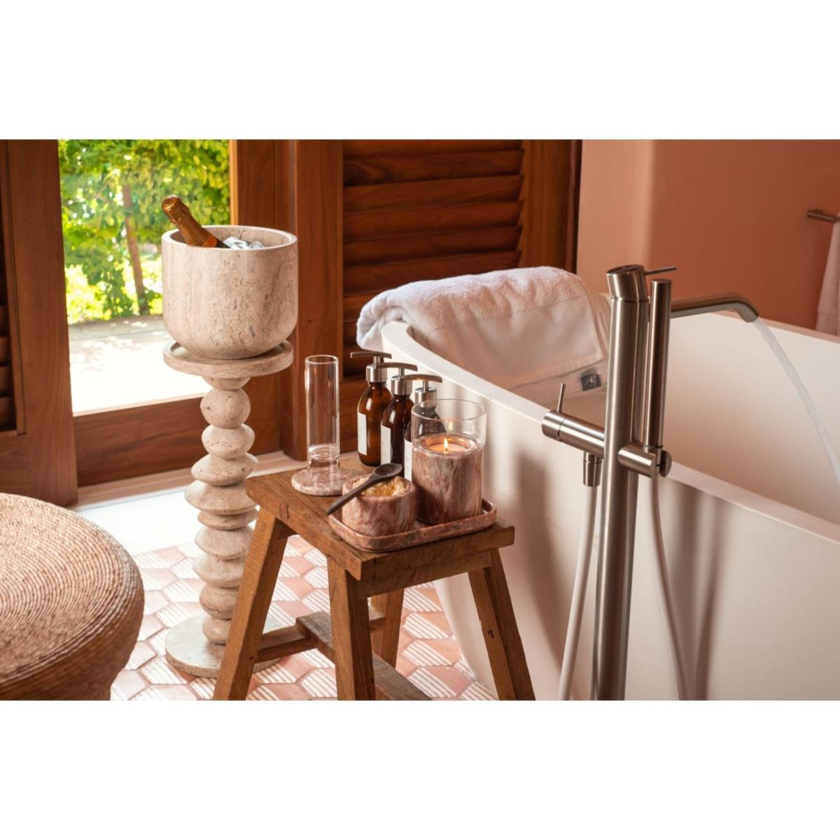 This set features three hand-carved marble candle holders, top with a clear borosilicate glass shade. This type of glass resists direct flame and thermal shock, which makes it perfect for a garden, a terrace or any interior. It includes the wax of the three candles that fit with the perfect size. Designed to conventional measurements And replacements can be obtained anywhere and at a low cost. Sanctuary candles gracefully decorate all spaces. They are ideal to complete the decoration of the house. Currently available in different colors.