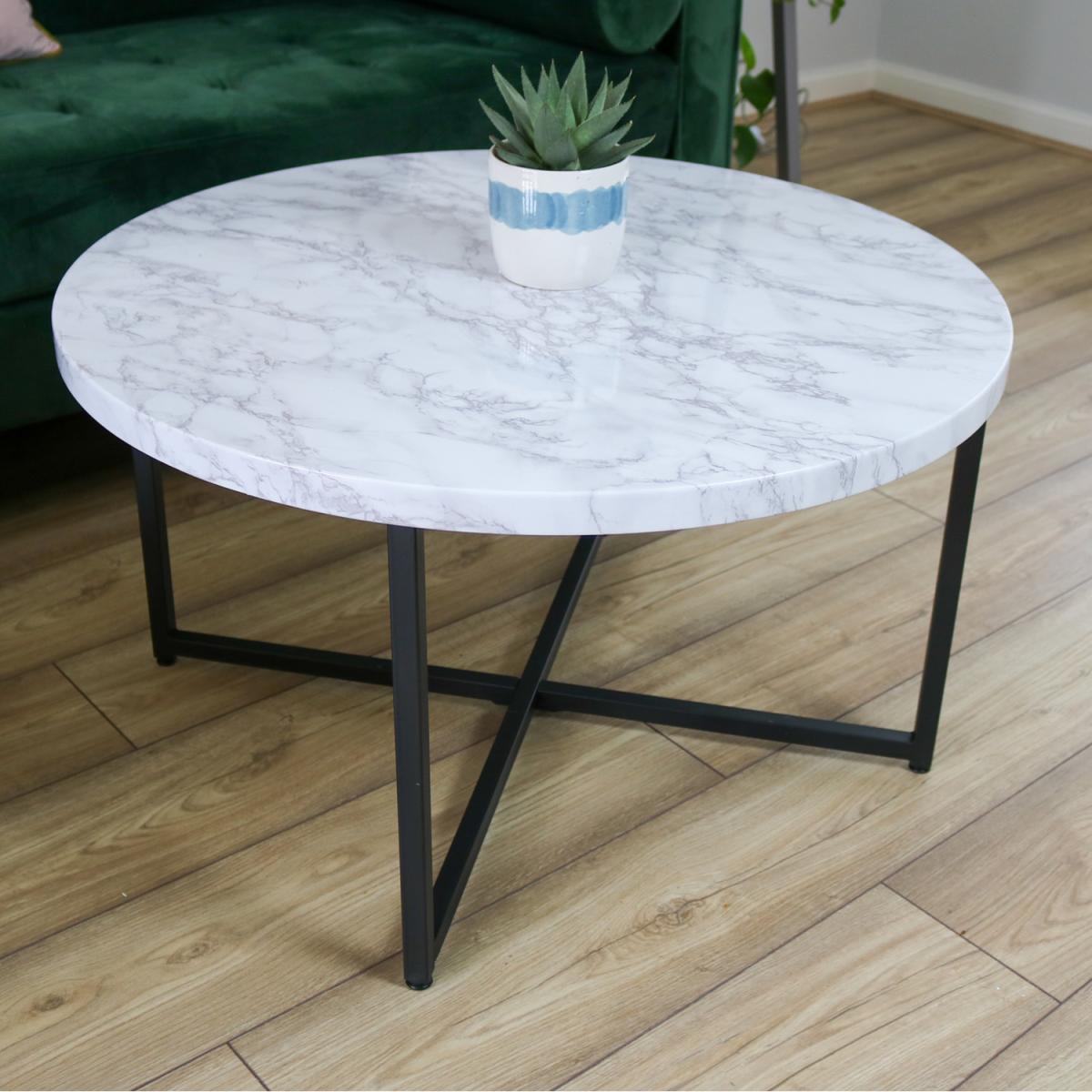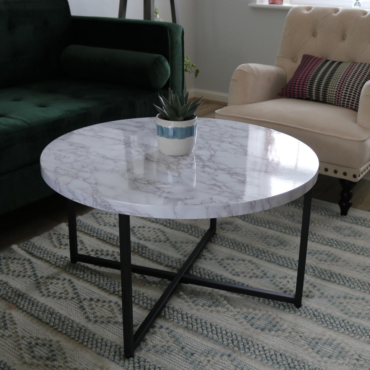 Marble-Look Round Coffee Table - White