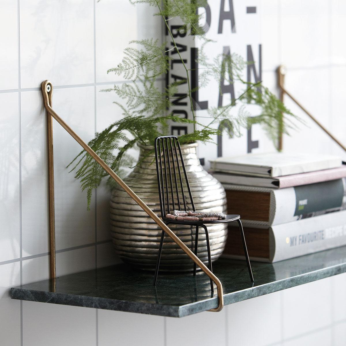 Marble is trendy right now. With the Marble shelf, House Doctor provide their adaptation of the classic 1970s shelf unit. The shelf is made of marble that comes in a wonderful green colour. The shelf will certainly bring liveliness to your walls. Combine the shelf with a set of nice shelf supports to get a beautiful shelf unit that will undoubtedly add an exclusive dimension to your décor. It is the perfect shelf unit for the bedroom, bathroom or living room. Dimensions: 24x70 cm.