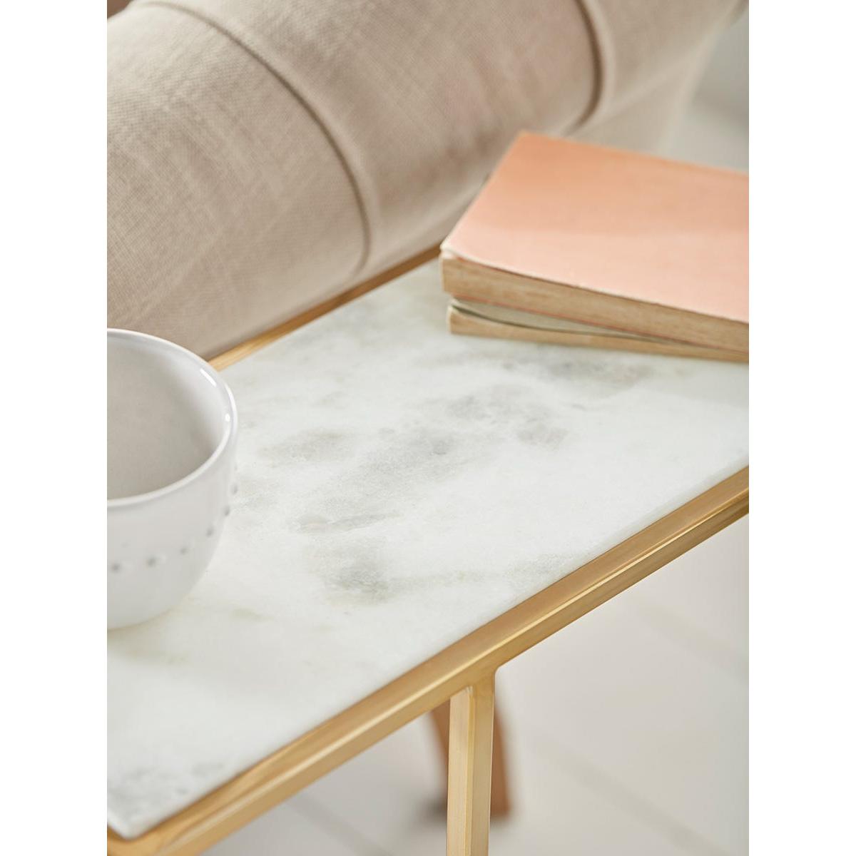 With a luxe finish that lends itself to both modern and classic interiors, our Marble Sofa Table is a versatile addition to a carefully considered living space. A warm gold metal frame is topped with a cool piece of white marble to provide the perfect companion to your sofa or favourite chair. The slim design provides just enough space for a glass or coffee cup, without dominating the scene.