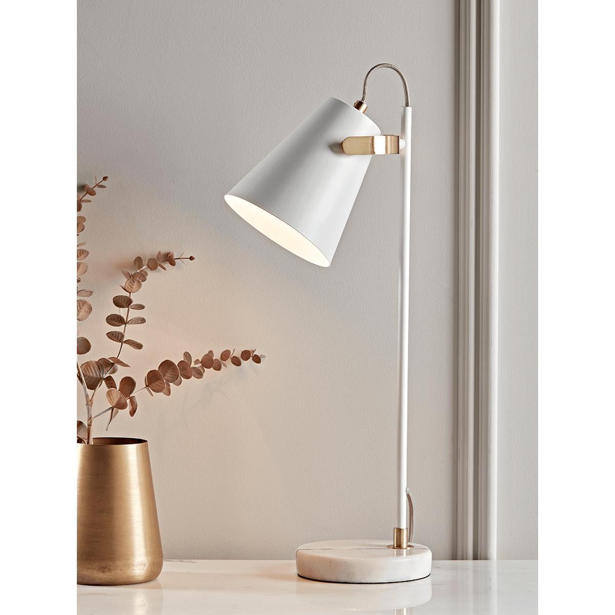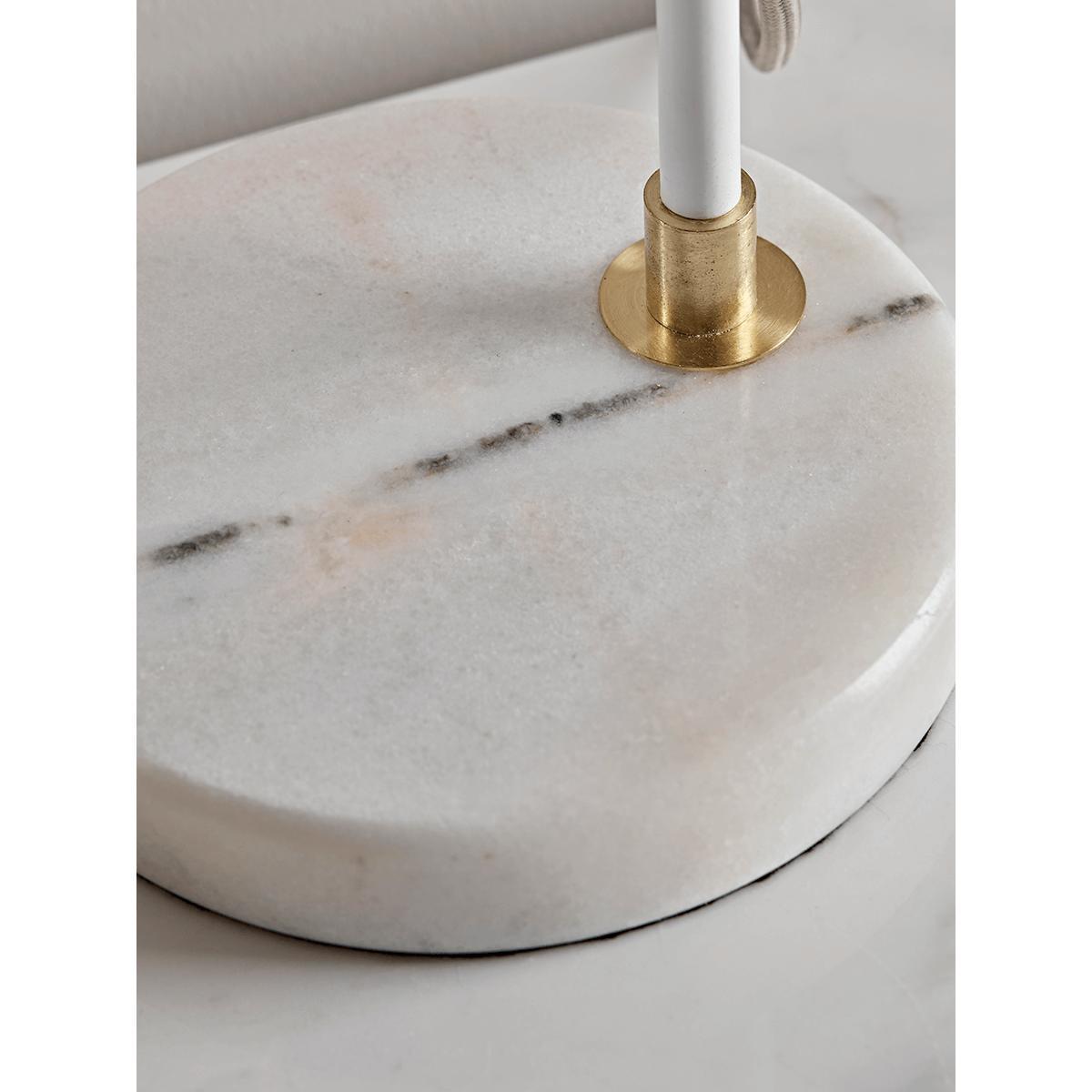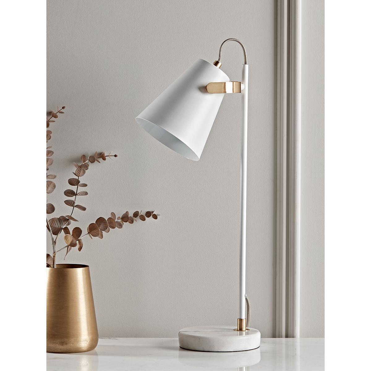 Enjoy a stylish workspace by adding considered pieces such as our Marble White Desk Lamp. An angled light stems from a weighty circular marble base and features a high shine shade with brass trim details. With an easily adjustable arm and head and a weighty base, our large lamp will completely transform your desk or reading space.