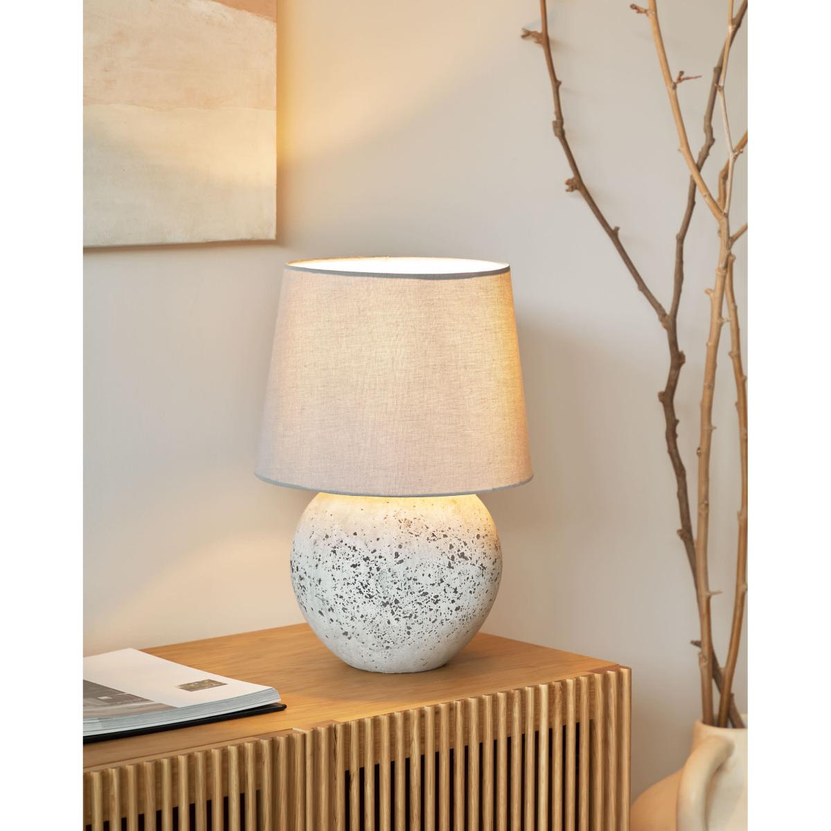 I love this lamp for its versatile, understated look that seamlessly blends modern minimalism with a touch of texture thanks to the ceramic base. It works particularly well in contemporary or boho interiors, where its neutral grey finish can complement other earthy tones or soft colour palettes. Practical styling tips include placing it on a side table in a living room for a cosy feel or on a bedside table to add a subtle glow. Its compact size makes it a great option for smaller spaces or desks, and pairing it with similar textured accessories can help create a cohesive and calming space. Overall, it's a stylish yet functional piece that can elevate various interior styles without overpowering the decor.