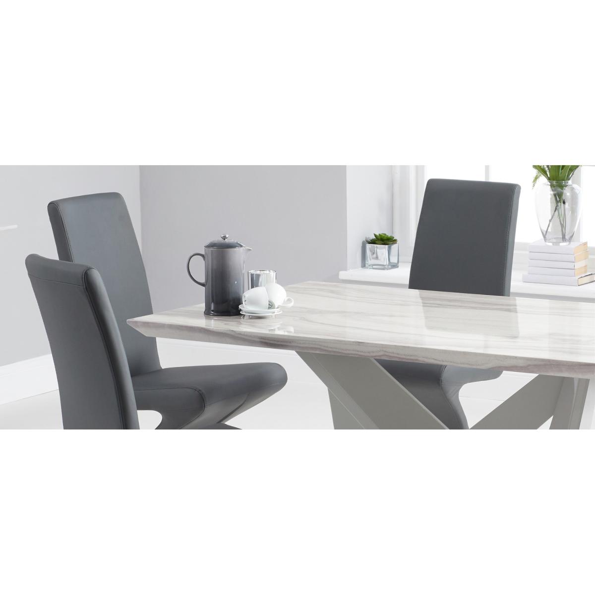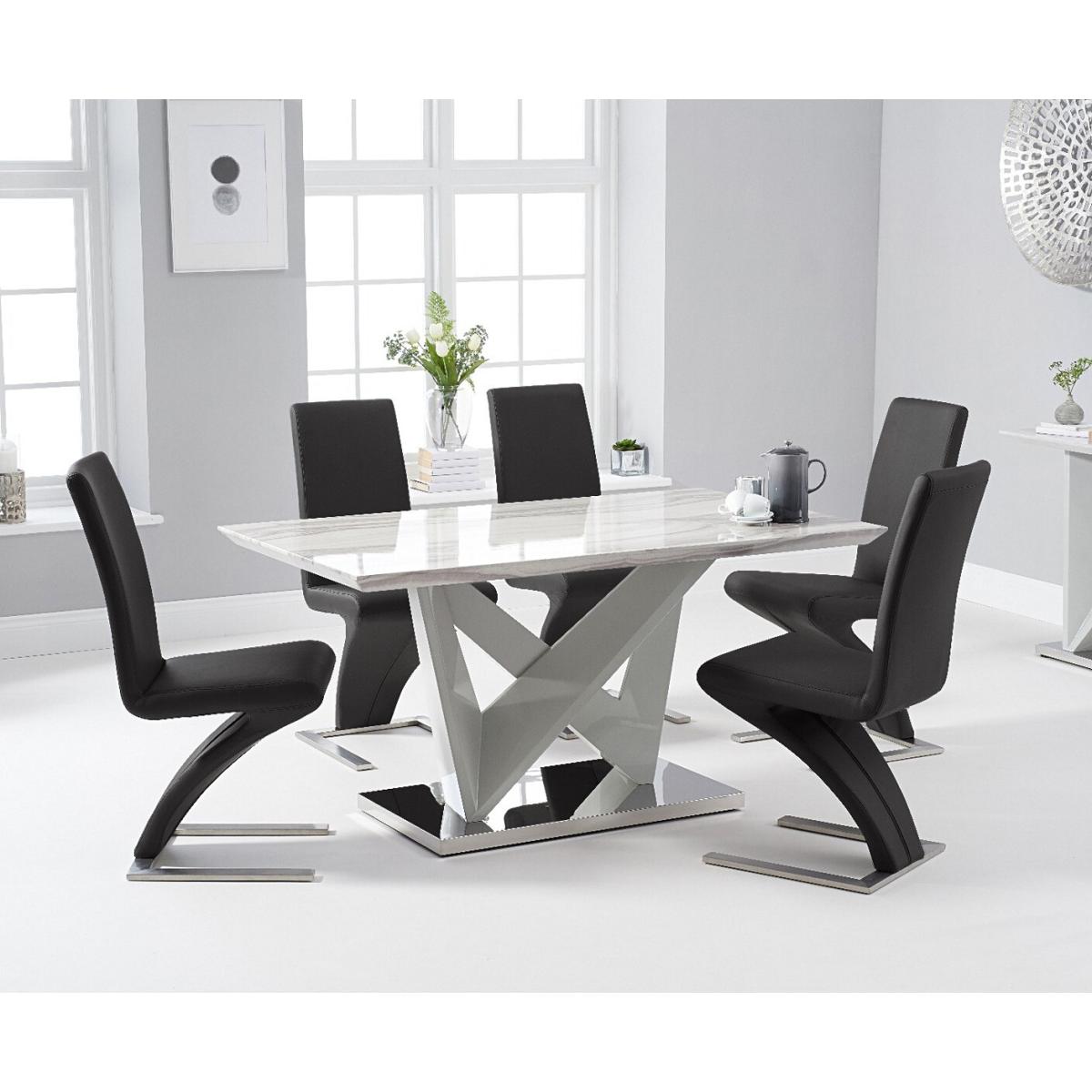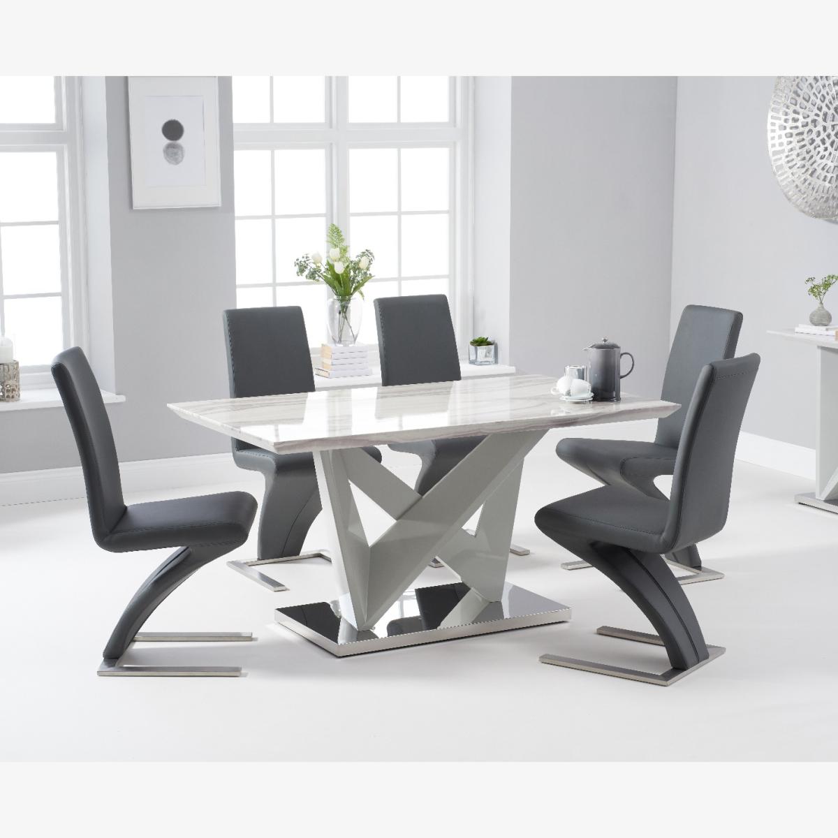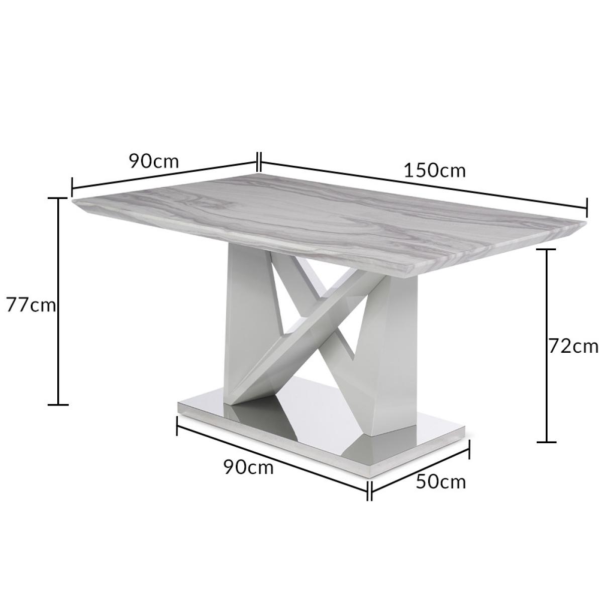 I love this marble effect table for its modern, sleek look and versatility. The light grey Carrera finish makes it a great centrepiece in minimal or contemporary interiors, easily pairing with both monochrome schemes and soft neutral palettes. The black Aldo chairs add a sophisticated contrast that can work well in both monochrome and more colourful schemes. For styling, consider keeping surroundings understated to let the table shine, perhaps adding a statement centrepiece or a runner to enhance the marble effect. It's also practical for everyday use, with a surface that’s durable and easy to clean, making it perfect for family homes or entertaining. Overall, this set is a stylish, functional choice that can anchor a variety of interior styles.