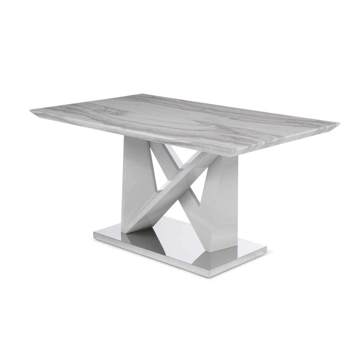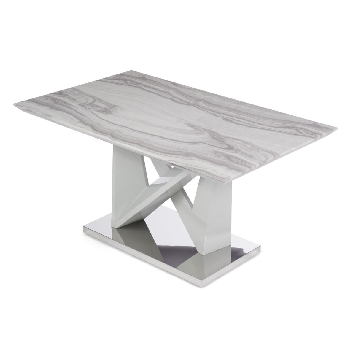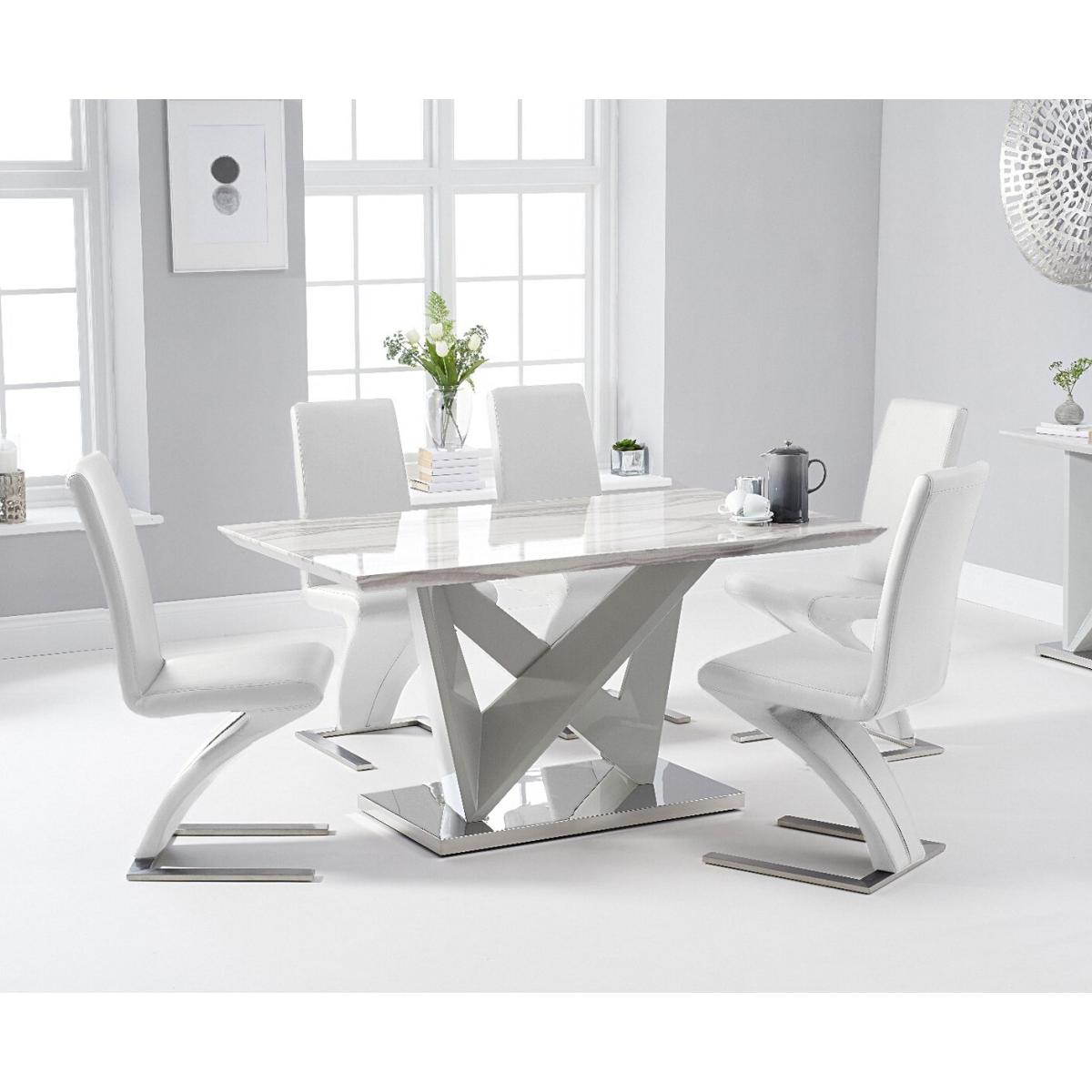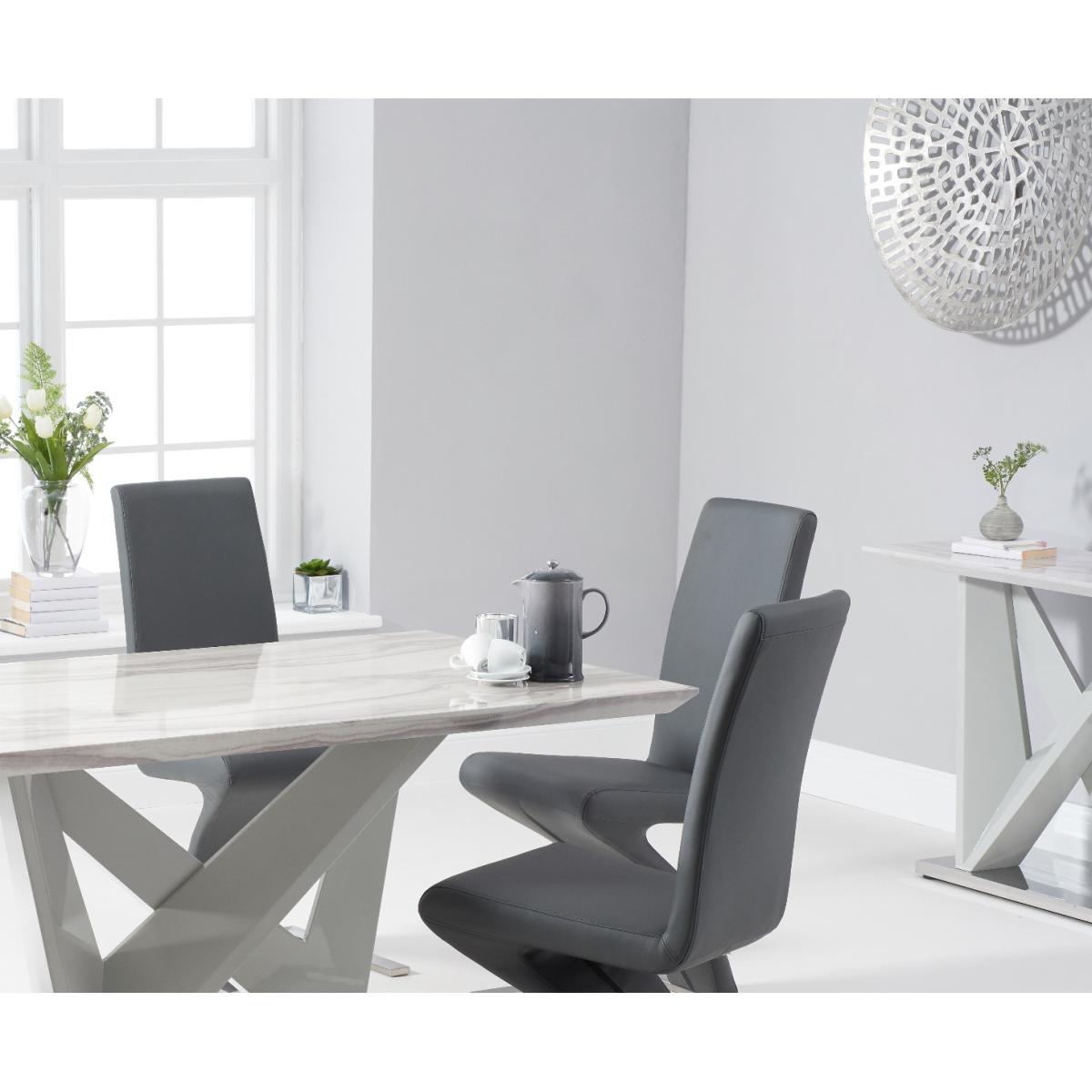 I love this marble effect table for its modern, sleek look and versatility. The light grey Carrera finish makes it a great centrepiece in minimal or contemporary interiors, easily pairing with both monochrome schemes and soft neutral palettes. The black Aldo chairs add a sophisticated contrast that can work well in both monochrome and more colourful schemes. For styling, consider keeping surroundings understated to let the table shine, perhaps adding a statement centrepiece or a runner to enhance the marble effect. It's also practical for everyday use, with a surface that’s durable and easy to clean, making it perfect for family homes or entertaining. Overall, this set is a stylish, functional choice that can anchor a variety of interior styles.