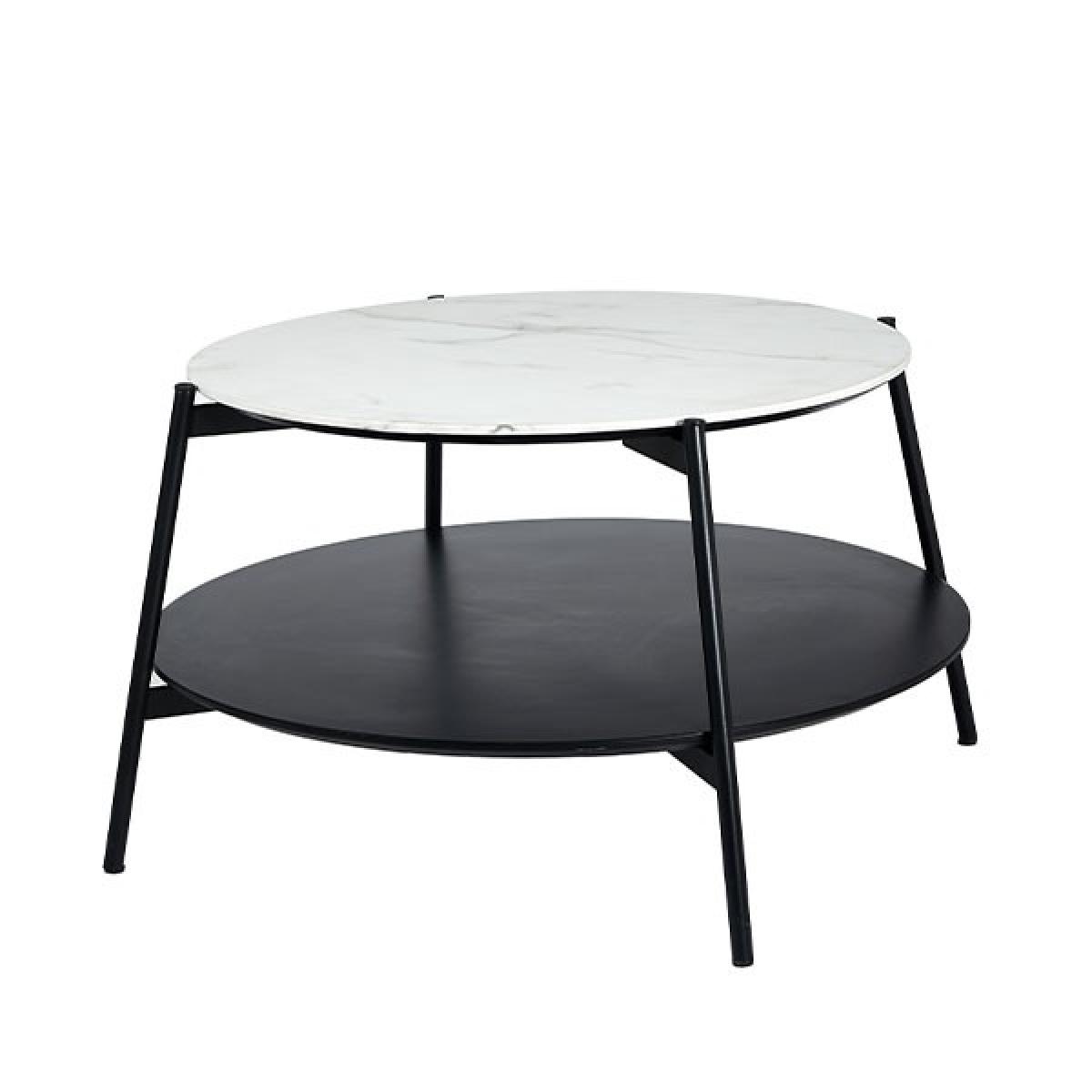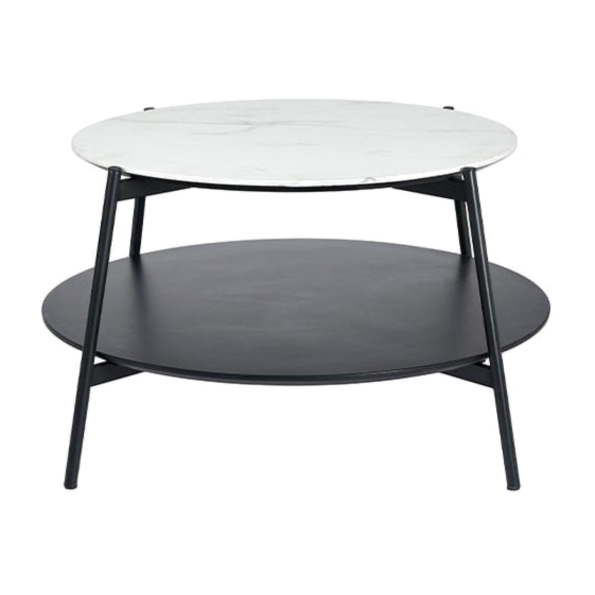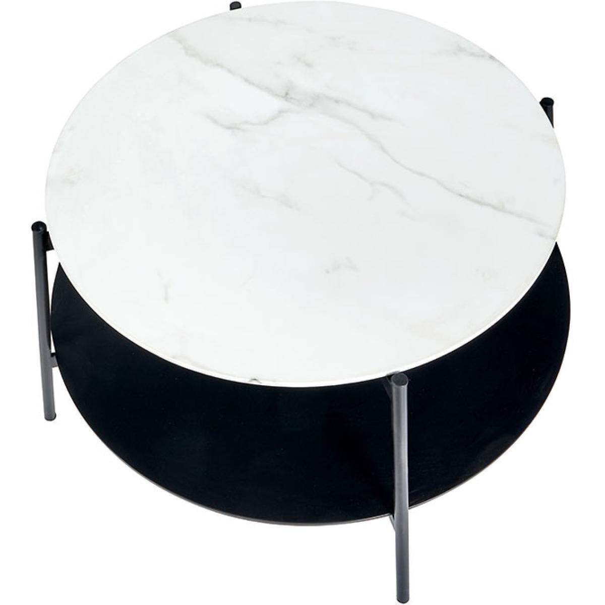 Modern white marble and black metal coffee table. The Marchello collection features modern furniture pieces that boast a sleek black metal finish and white marble effect veneer. The perfect pieces to complement any interior.