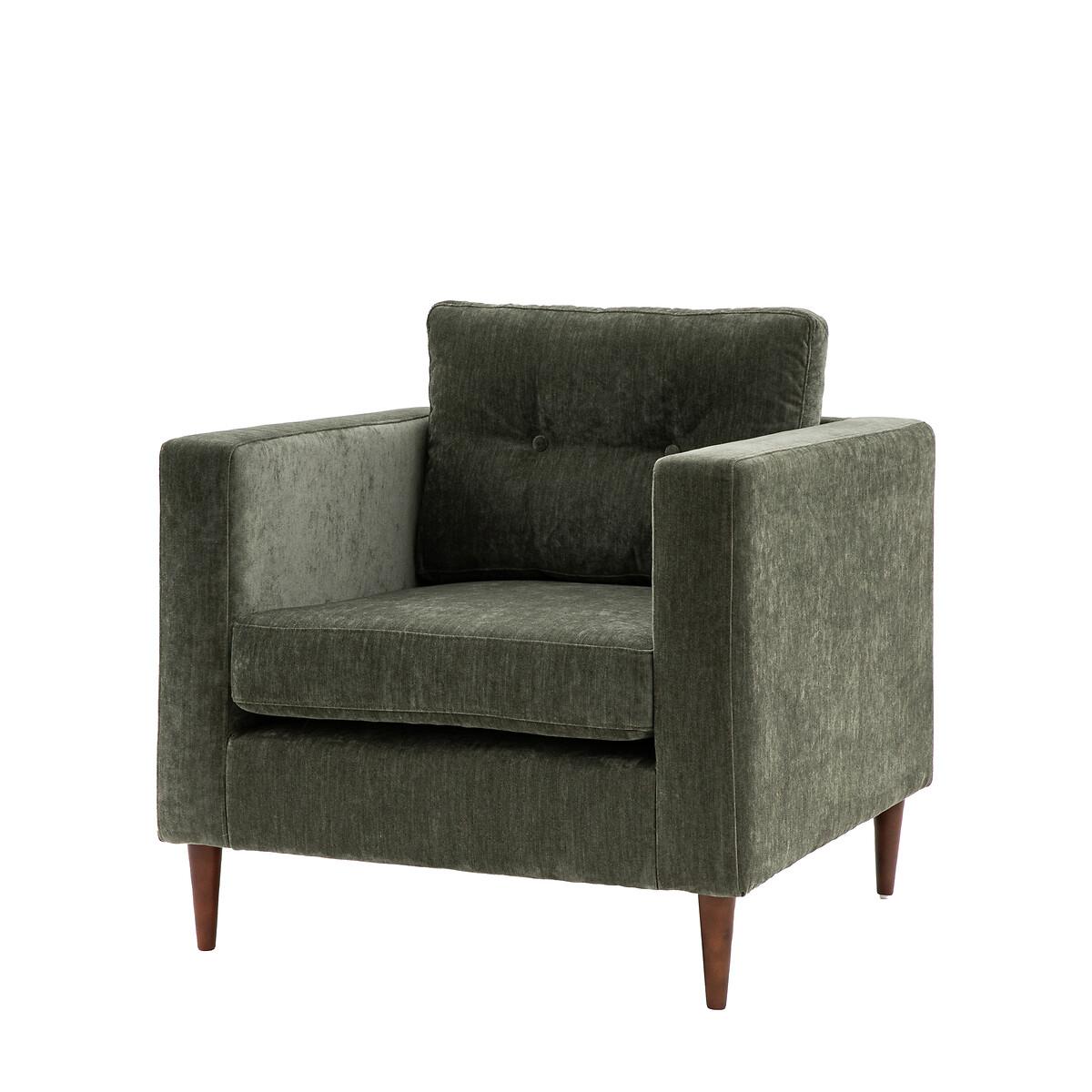 Block arms and button stitch detailing come together in the comptemporary design of the Marchfield armchair to create effortless mid-century style. Tapered wood feet create a feeling of space and a scandi inspired look. Ideal for modern style interiors. Product details• Soft Brushed Upholstery• Beech legs• Pine Frame• Single seat• Seat Filling - Foam• Back Filling - Foam• Seat Firmness - Medium• Back Firmness - Medium• 12 month manufactuers warranty. Product Composition - Pine 45% / Foam 23% / Fabric 13% / Plywood 10% / Beech 9%Product Dimensions - 86 cm x 84 cm x 84 cm , Weight - 25.9 KGSeat Height - 45 cm. Seat Width-58 cm. Seat Depth - 54 cm Leg / Feet Height - 15.5 cm Clearance to Floor - 15.5 cm Package Dimensions - 88 cm x 88 cm x 57 cm, Weight 31 kg. This product will be dispatched by one of our trusted suppliers. You’ll be contacted by their selected courier about your delivery. Please note: this product cannot be delivered to all Offshore Islands, Northern Ireland or Republic of Ireland. GALLE01