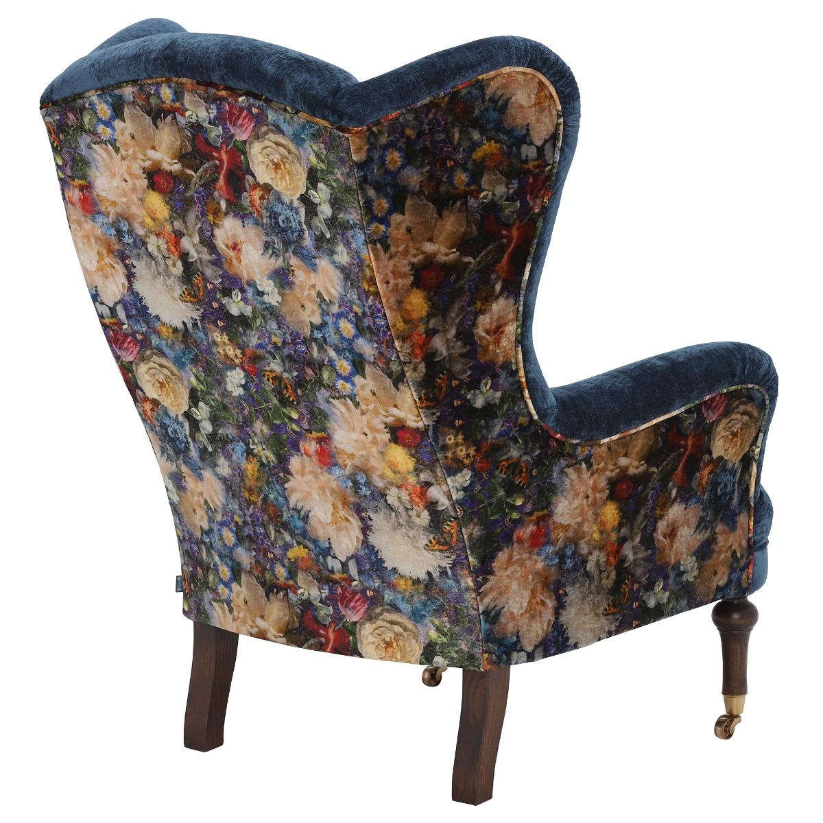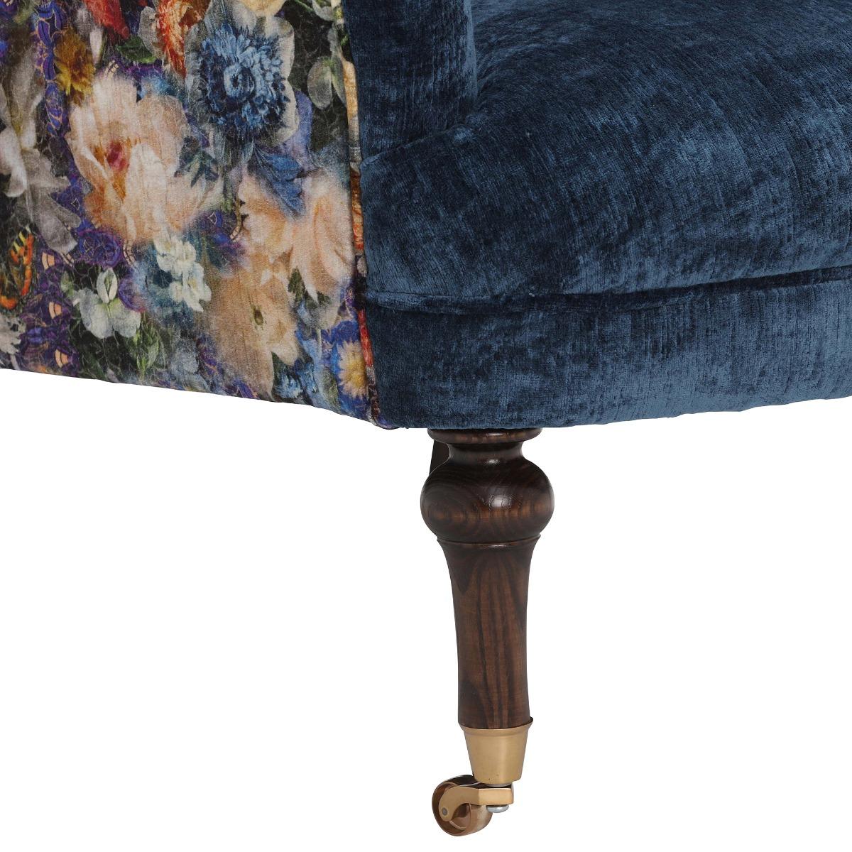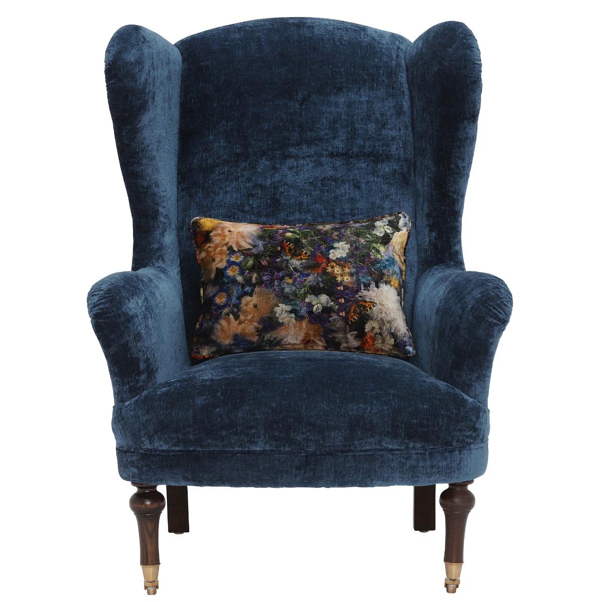 With two types of luxurious velvet alongside stunning turned feet with metal castors, the Marchmont Wing Chair has an eye-catching design that blends plain and patterned upholstery and vintage design for a modern classic look with an art deco twist. A perfect partner for the Claudette Grand Sofa, the Marchmonts grand wingback shape is complemented by a plump seat cushion that is great for those who love a chair that feels as good as it looks. Shown in Alure Velvet Azure and Royal Gardan Sapphire with brown and brass aster feet. Scatter cushions are available at an additional cost, please contact our sales team for further details.
