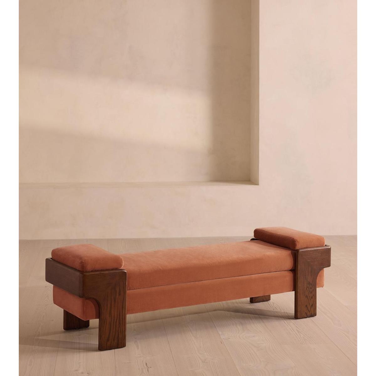 I love the Marcia bench in antique rose velvet for its luxe yet versatile presence. It works particularly well in interiors that balance classic and contemporary styles, such as a cosy entrance hall, a dressing area, or as additional seating in a lounge with neutral or muted tones. The velvet texture adds richness, while the wooden legs keep it grounded and tactile. Practical styling tips include pairing it with complementary cushions or throws to soften the look or using it as a statement piece at the end of a bed to enhance a layered, layered aesthetic. Its colour and material make it a flexible choice that can elevate both traditional and modern interiors seamlessly.