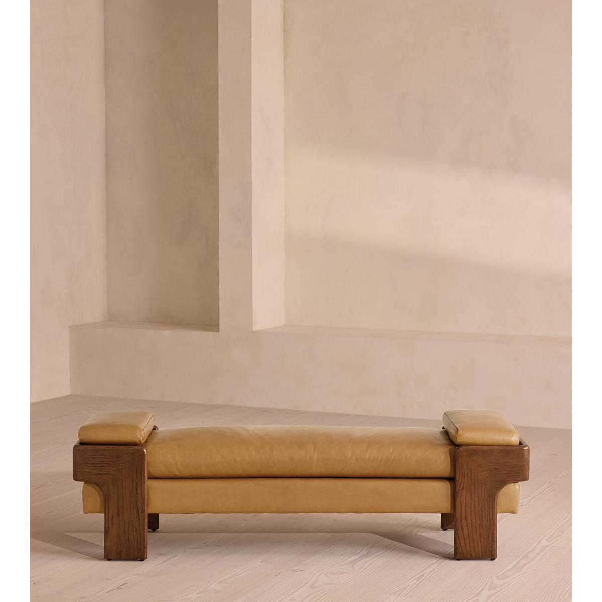 The Marcia Bench is a versatile piece that works beautifully in both modern and traditional settings. I love its rich honey leather that adds warmth and character to any room, making it a practical yet stylish seating option or an elegant footstool. It’s especially effective in entryways, bedrooms, or living areas where it can double as a place to lay out accessories or books. For styling, consider pairing it with textured cushions or placing a tray on top for added function. Its sturdy wooden frame also means it’s durable, making it an excellent investment for various interior styles.