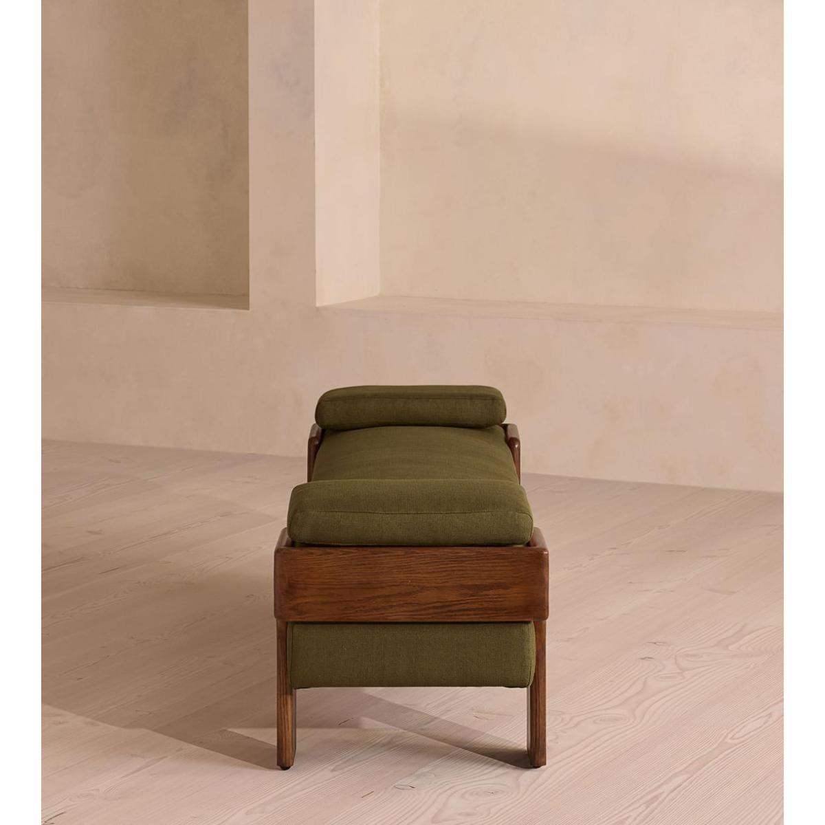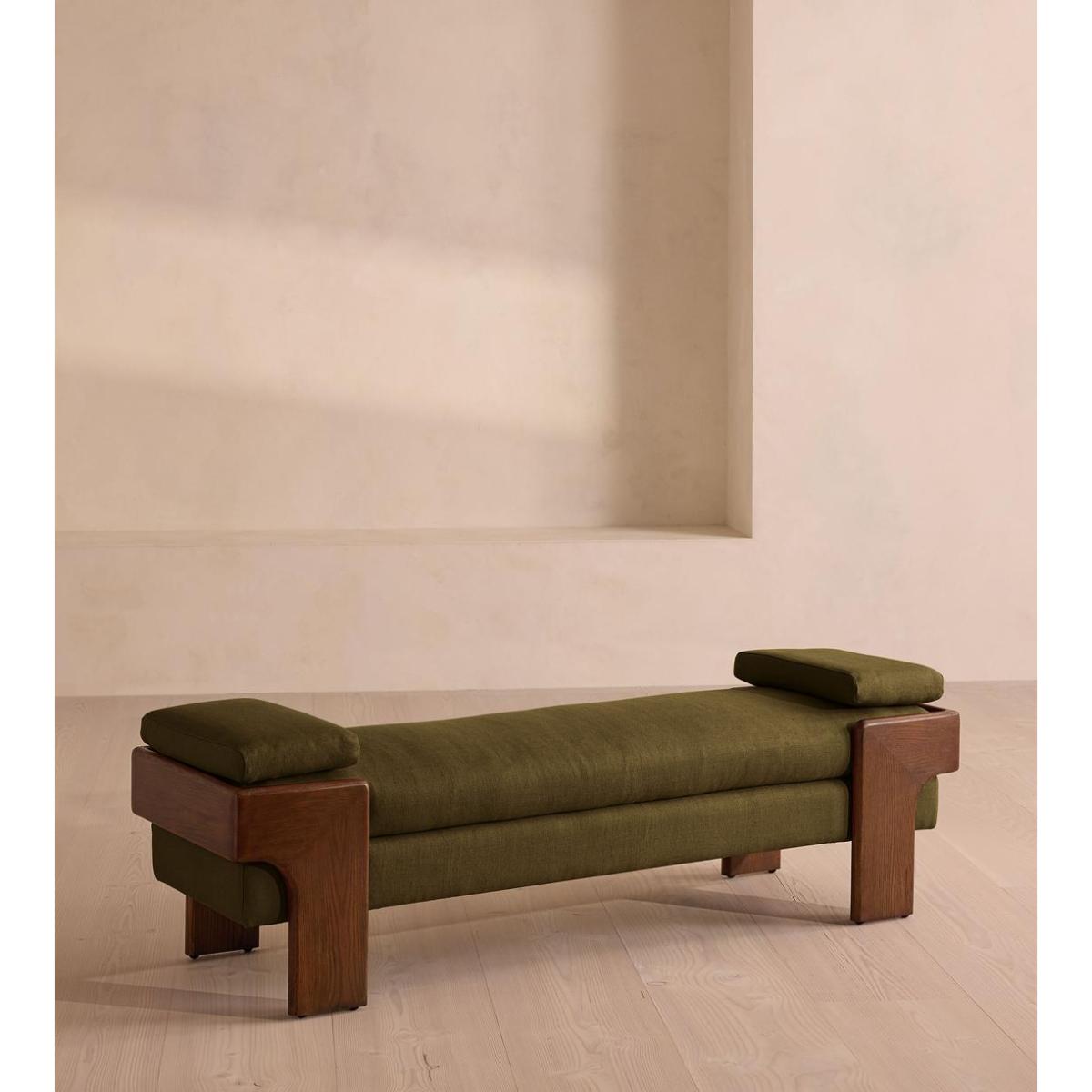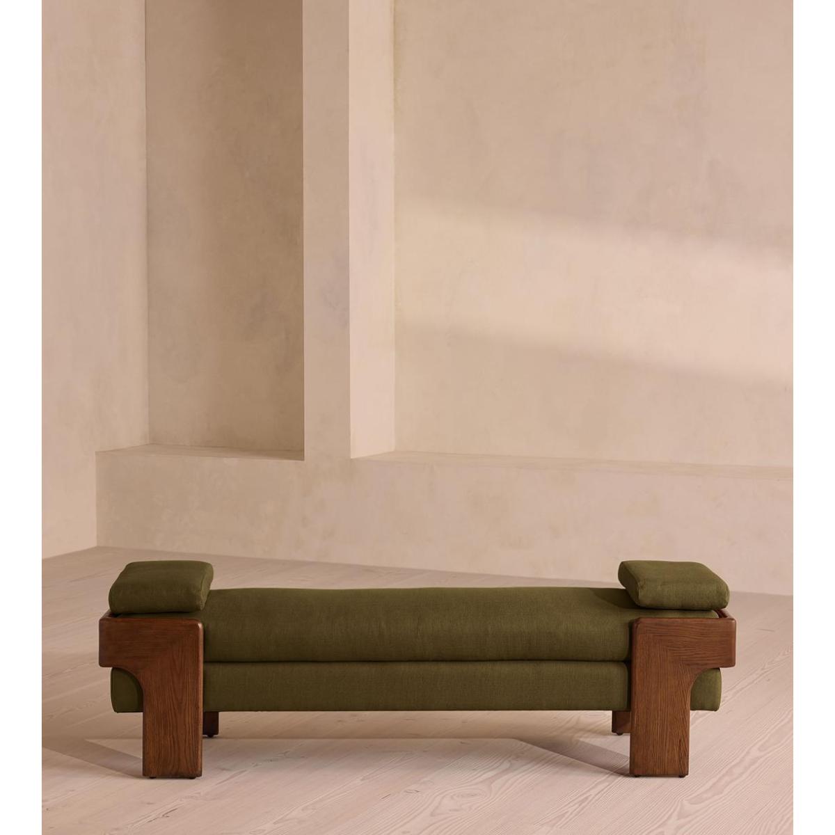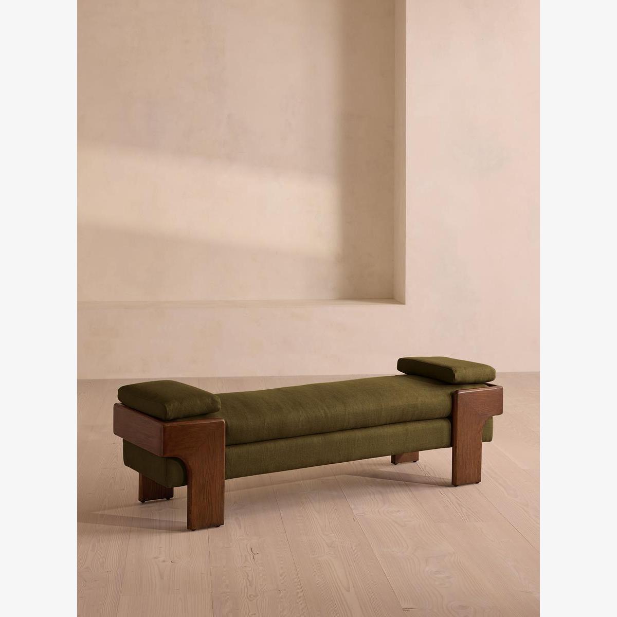 I love the linen bench in olive for its versatile yet understated appeal. Its neutral linen upholstery combined with solid wooden legs makes it a great addition to both traditional and modern interiors. It works well placed at the foot of a bed for extra seating or as a statement piece in a hallway or living room. Practical styling tips include adding a couple of cosy cushions to make it even more inviting or draping a throw for layered texture. Its muted olive tone pairs beautifully with earthy colour palettes, making it easy to incorporate into existing schemes while adding a touch of laid-back sophistication.