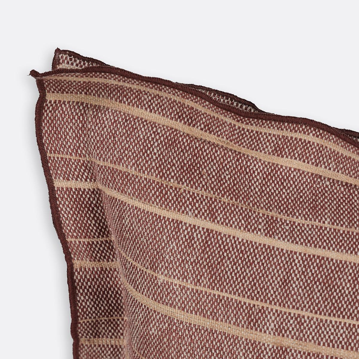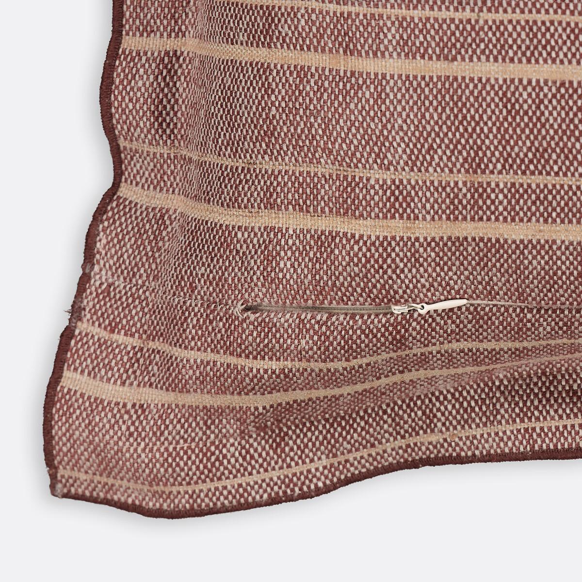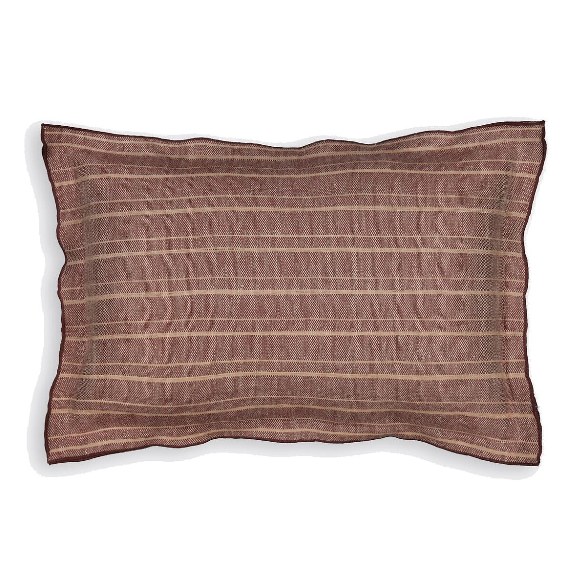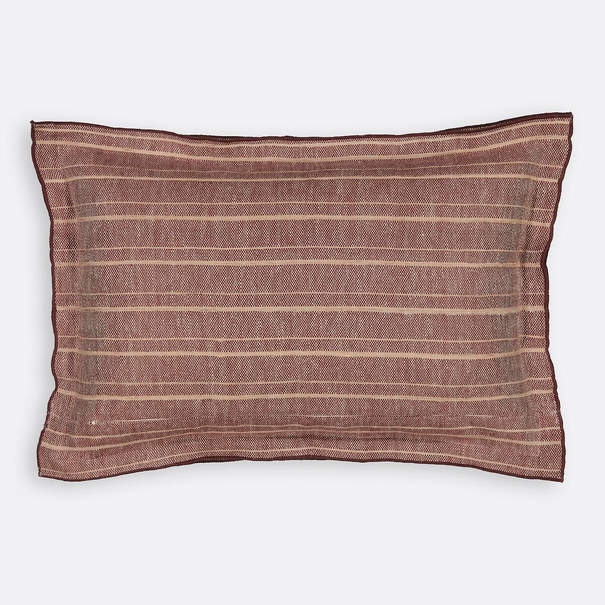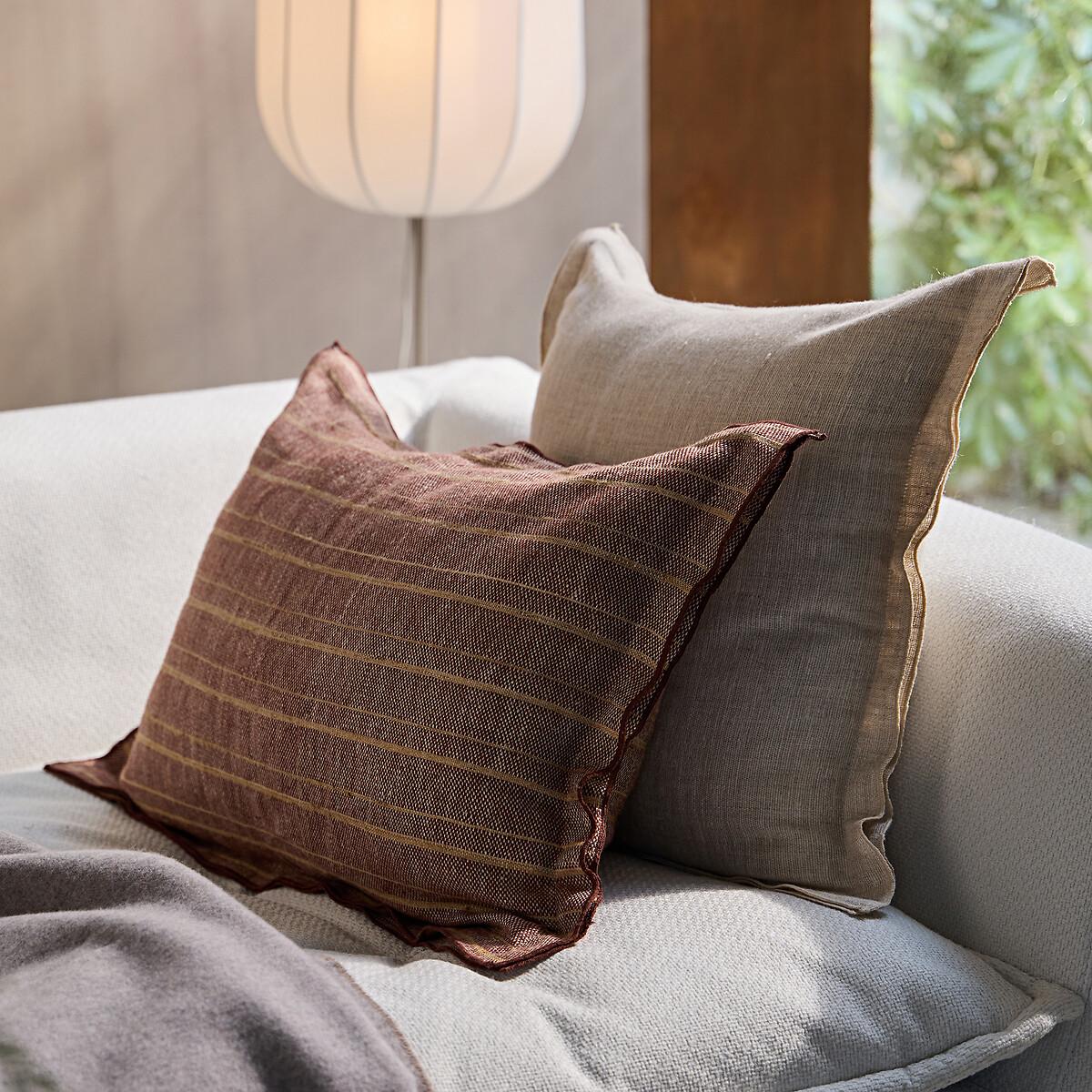 In burgundy and natural shades, the striped Marciana Cushion Cover plays with materials and warm colours for an elegant look. Product Details • 85% linen, 15% silk • Double frill finish • Concealed zip fastening. Care Advice Follow our care tips to maintain the quality of your linens • Machine washable at 30°C • Tumble dry at low temperature • Iron at low temperature Dimensions • 60 x 40cm • OEKO-TEX® Standard 100. Standard 100 certification by OEKO-TEX® tests textile products for harmful substances via an independent, international label.