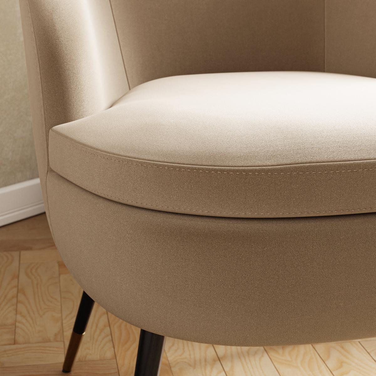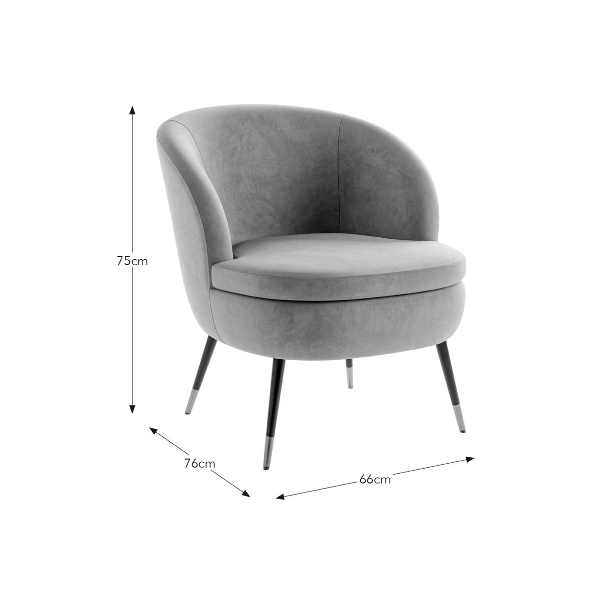 * Soft velvet upholstery* Curved back* Metal Legs* Foam and fibre filled seat This cocktail chair adds a touch of glamour to any interior with its luxurious velvet upholstery. The rich texture of the fabric enhances the chair’s plush appeal, while the foam and fibre-filled seat and backrest ensure a supremely comfortable lounging experience. Its sleek metal legs provide a modern contrast to the soft curves of the chair, combining durability with contemporary style.