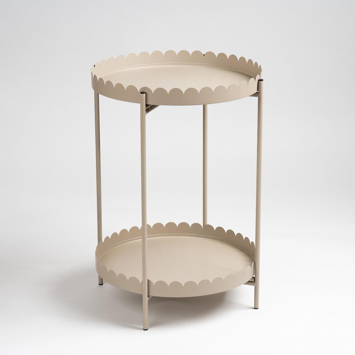 Transform your living space with the timeless elegance of this metal round scallop table. This exquisite table features a beautifully scalloped edge that adds a touch of sophistication and charm to any room, making it a stunning focal point in your home. With its classic round shape and elegant finish, this table seamlessly fits into various décor styles, from traditional to contemporary. Perfect for enjoying a hot drink, this round scallop side table offers both functionality and aesthetic appeal. Its timeless design and meticulous craftsmanship make it a versatile addition to any home, promising to elevate your interior décor with its graceful presence. Product Details:• Round table with scalloped edge• Partial assembly required• Made from iron• Maximum weight capacity 10kg• Removable table top• Assembly required. Product Composition - 100% Iron. Product Dimensions - 38 cm x 38 cm x 50 cm, Weight - 2 kg. Package Dimensions - 53 cm x 41 cm x 10 cm, Weight - 2.2 kg. Please note: this product cannot be be delivered to all Offshore Islands, Northern Ireland or Republic of Ireland. This product will be dispatched by one of our trusted suppliers. You’ll be contacted by their selected courier about your delivery.