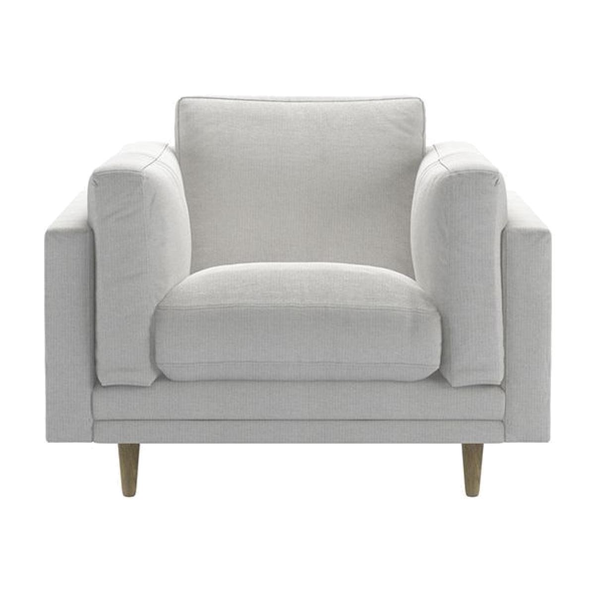 I love this armchair for its versatility and understated charm. Its light, foggy hue makes it a perfect addition to both neutral and colourful interiors, working especially well in Scandi, modern, or coastal schemes. The Clever Chenille fabric adds a touch of texture without feeling heavy, making it ideal for lively family spaces or more relaxed living areas. Practical styling tips include pairing it with soft-toned throws and cushions for a cosy look, or contrasting it with darker accessories to create visual interest. Its simple, clean lines make it a timeless choice that can be easily updated with small decor tweaks over time.