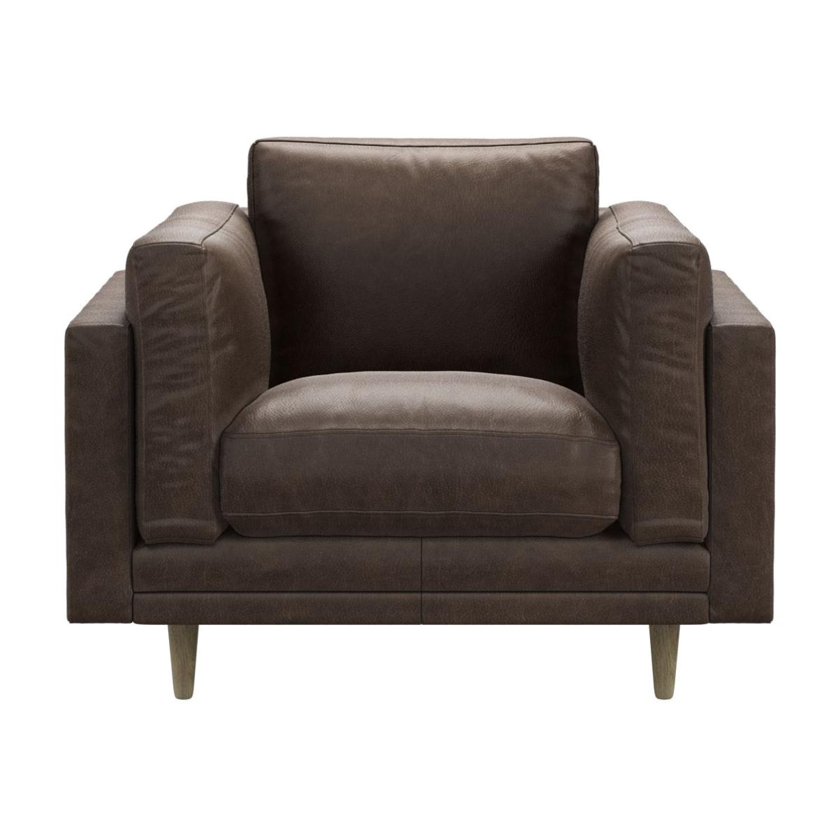 This armchair, with its rich walnut antique leather finish, adds a warm, timeless touch to both classic and contemporary interiors. I love its substantial presence and the way it balances comfort with sophisticated craftsmanship. It works particularly well in cosy living rooms, library nodal spaces, or as a statement piece in a mixed material scheme-pair it with soft textiles, metallic accents, or vintage accessories for an layered look. Practical styling tips include combining it with neutral or earthy tones to highlight the leather's depth, and adding plush cushions or a textured throw to invite relaxation. Its sturdy build makes it versatile across different styles, from rustic to modern minimalist.