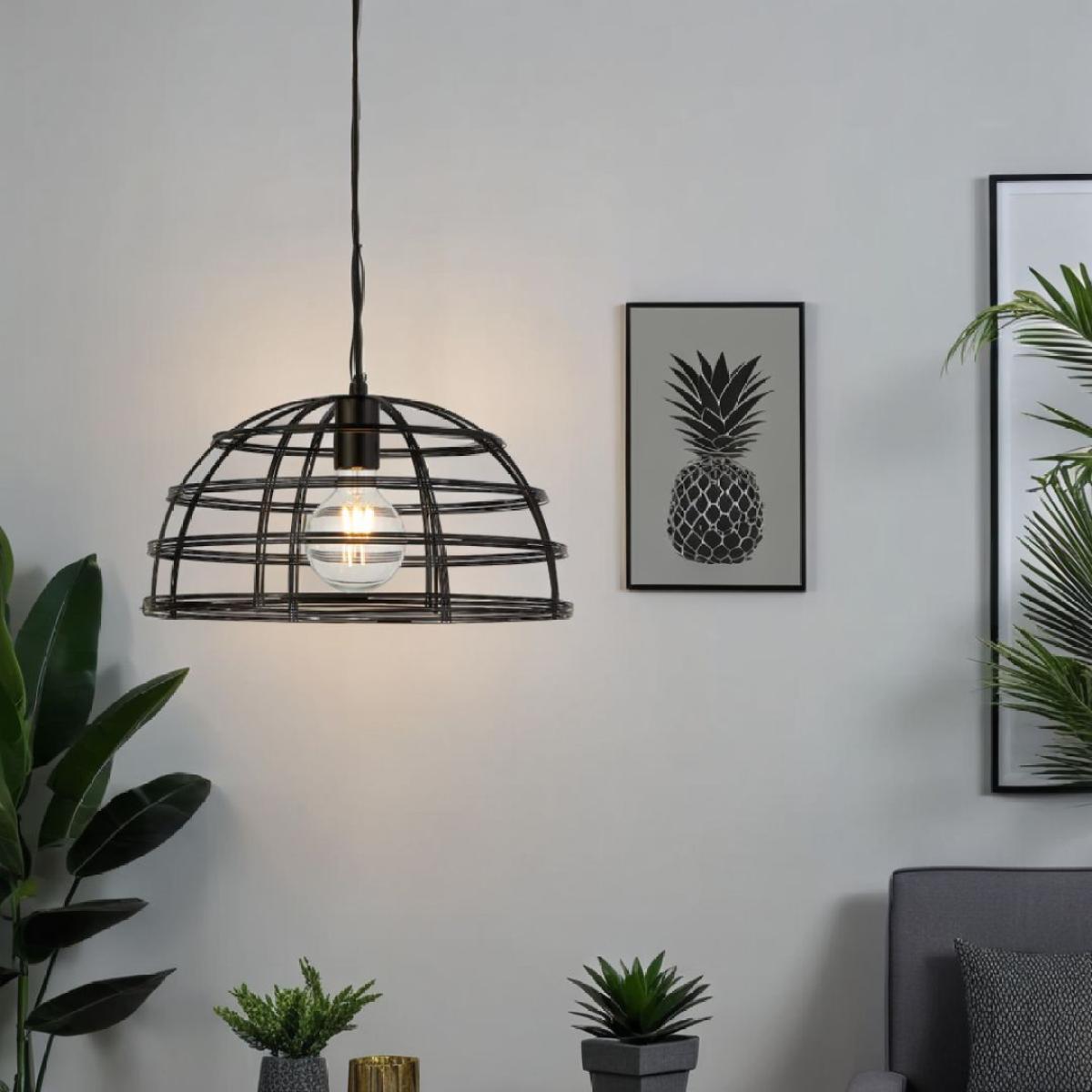 Contemporary black metal ceiling pendant featuring caged design Part of the Marcus collection, this industrial inspired ceiling fitting will add a modern touch to your home. Boasting a metal caged frame and matt black finish, complete the look with a vintage bulb. Contemporary black metal ceiling pendant featuring caged design Part of the Marcus collection, this industrial inspired ceiling fitting will add a modern touch to your home. Boasting a metal caged frame and matt black finish, complete the look with a vintage bulb.