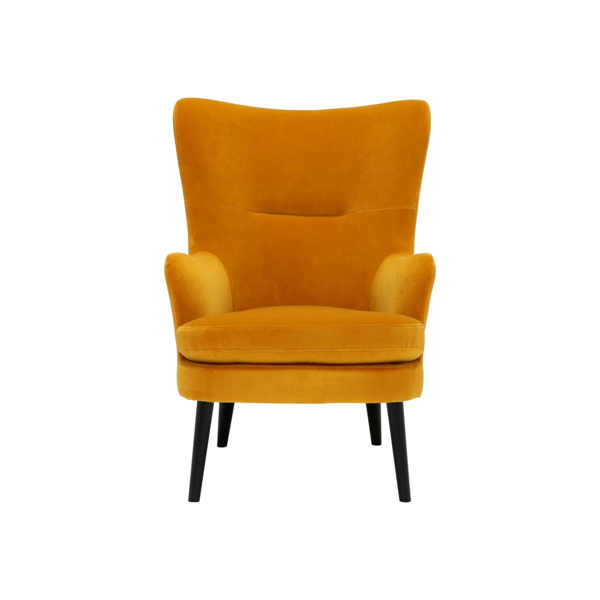 A contemporary piece with retro charm, the Marcy velvet chair will give a fun update to any living area. Available in a range of stunning colours, from the vibrant to the versatile, it looks fabulous in the bedroom, lounge or hallway. Defined by its shapely form, curved armrests and winged back, it has a soft and inviting feel - which is backed upby the incredible comfort of foam and fibre cushioning. Slim black legs lift the chair off the ground, opening up the space underneath for a light and airy look.