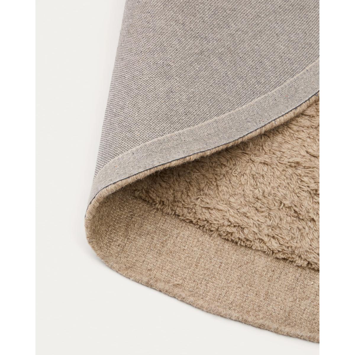 I really like this round beige wool rug for its versatility and understated warmth. Its neutral tone and soft texture make it a great addition to both modern and classic interiors, adding cosy comfort without overpowering a space. It's especially effective in living areas, bedrooms, or even under a dining table, where it can ground furniture while creating a welcoming feel. For styling, consider layering it over a patterned or darker rug for visual interest, or pairing it with natural wooden or metallic accents to enhance its understated elegance. Because of its size, it works well in medium to larger rooms, providing enough coverage to anchor your furniture without overwhelming the space.