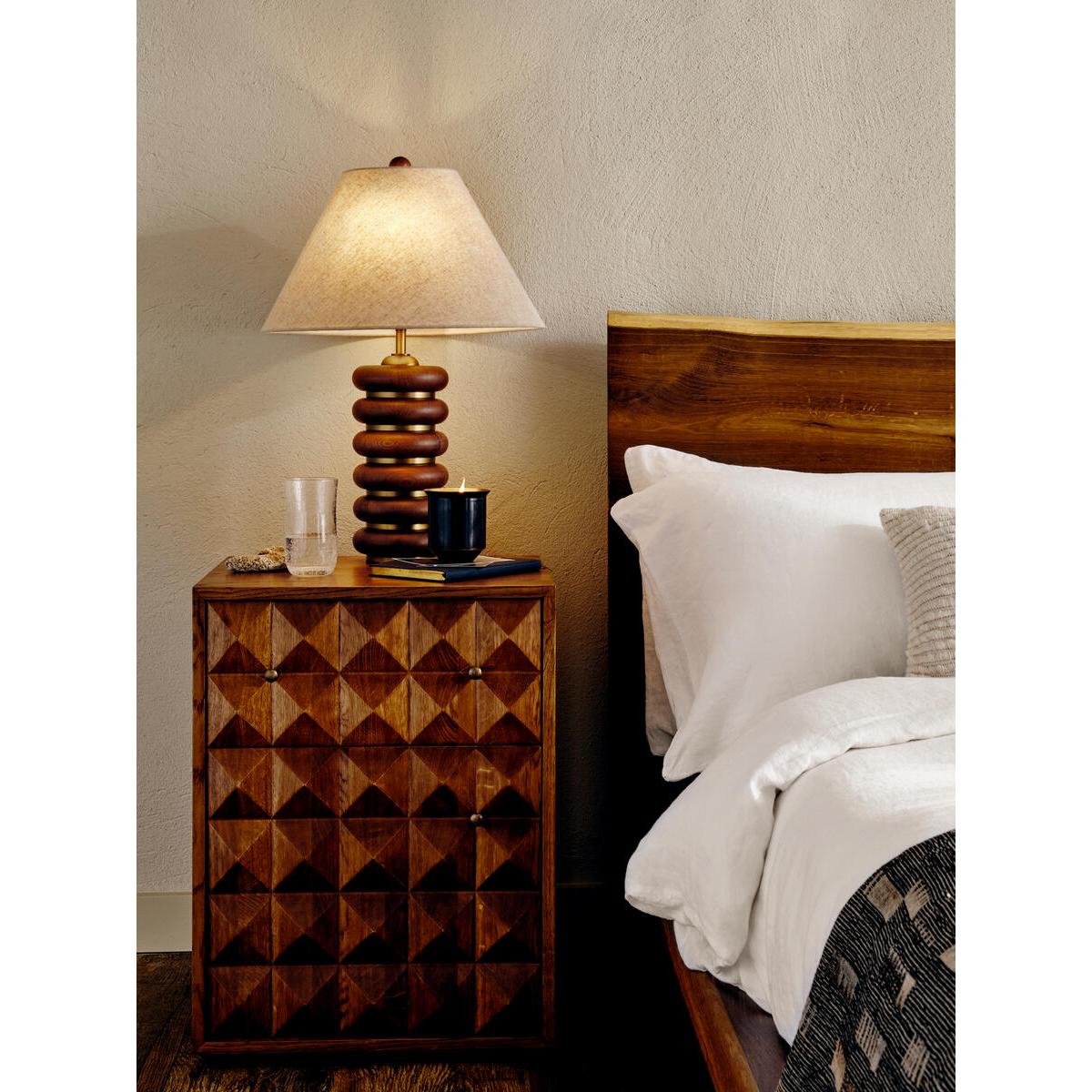 I love the Marena as it brings a warm, tactile quality to a bedroom, making it versatile for both modern and vintage-inspired interiors. Its rich wood finish and geometric detailing add visual interest without overwhelming the space. It works particularly well in eclectic or bohemian settings where mixed textures and natural materials are key. Practical styling tips include keeping the top surface uncluttered for essential bits like a lamp and a glass of water, while using the drawer for additional storage of personal items. Pair it with cosy bedding and layered textiles to create an inviting, yet functional bedside area.
