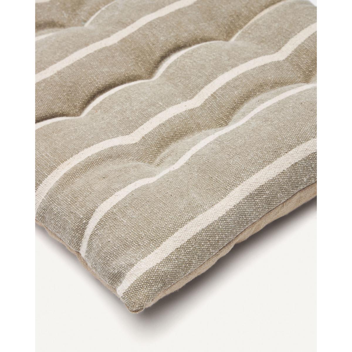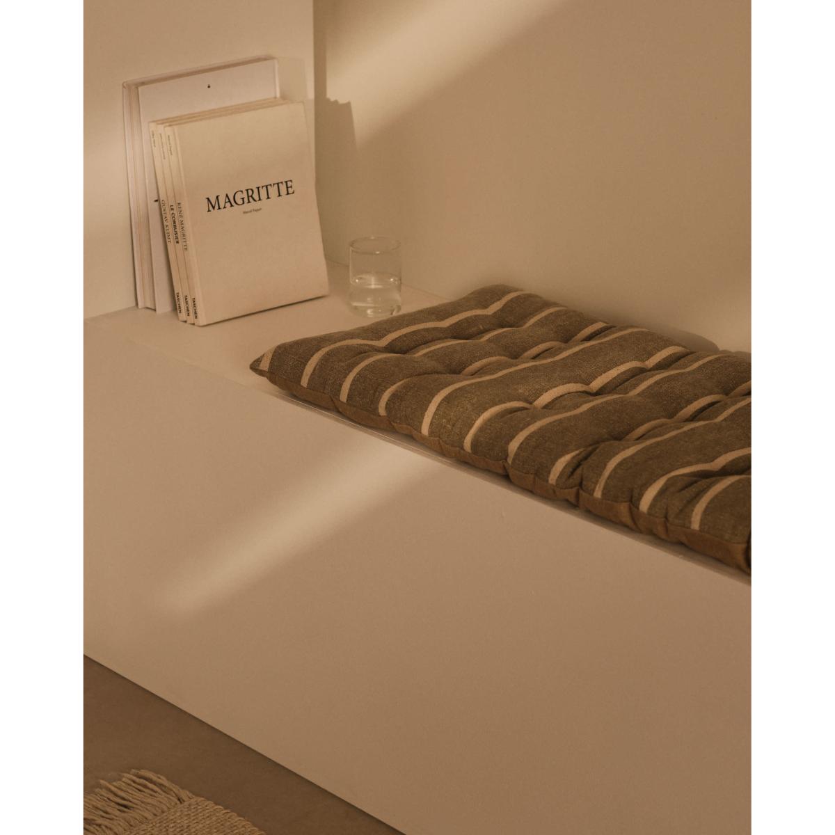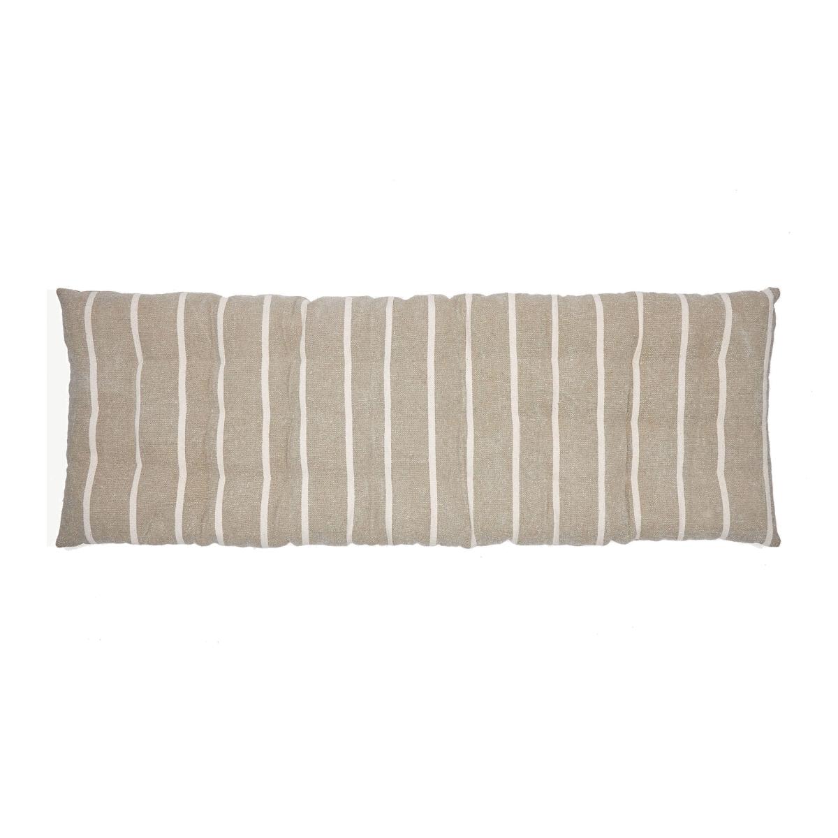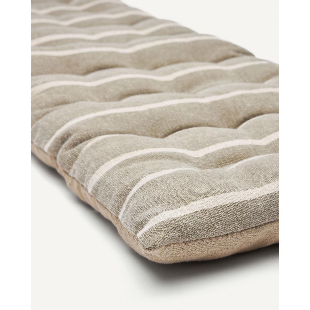 Margarida 100% beige cotton bench cushion with mustard stripe pattern, 40 x 120 cm