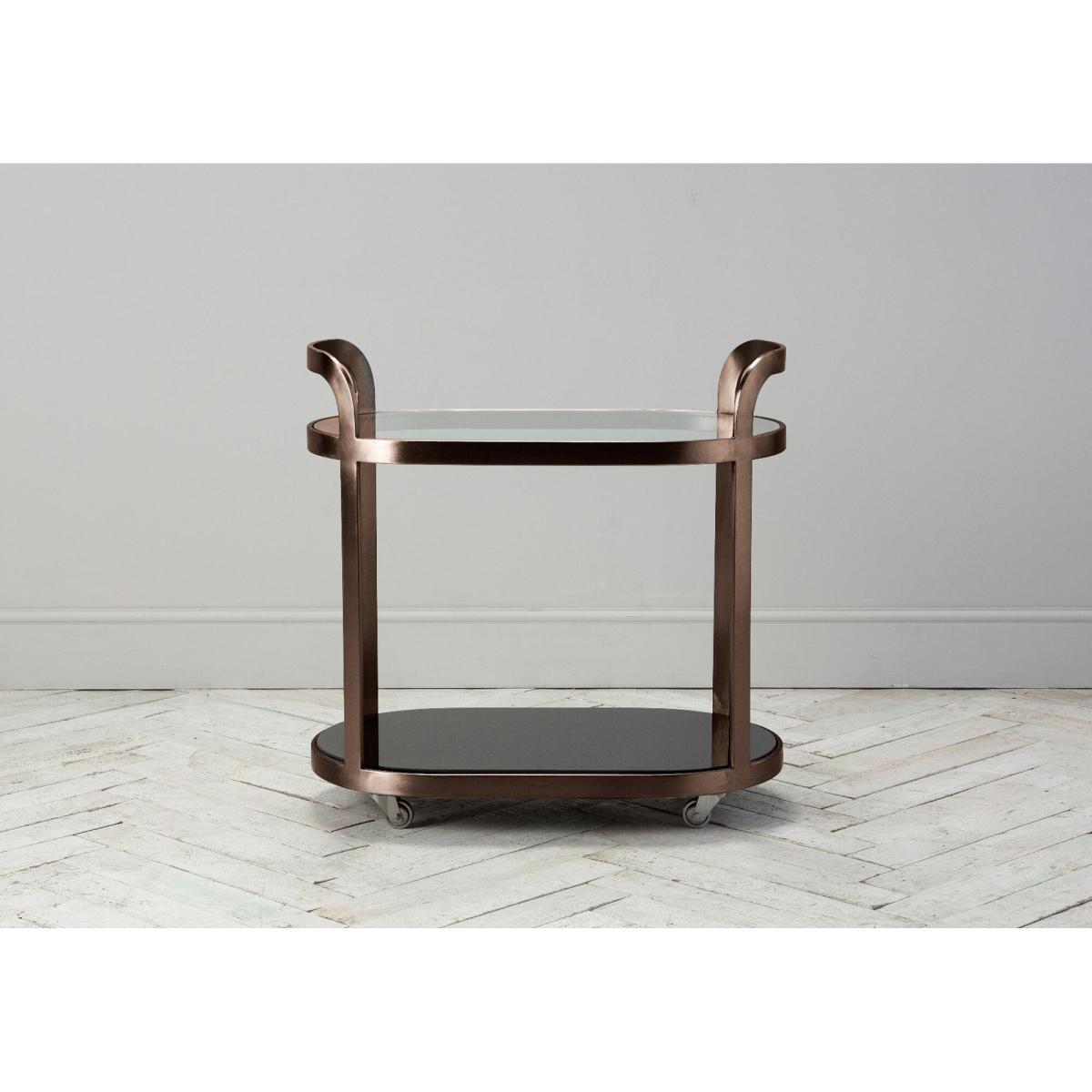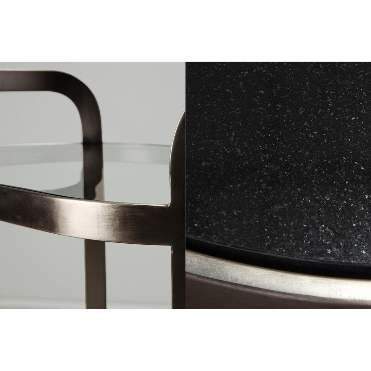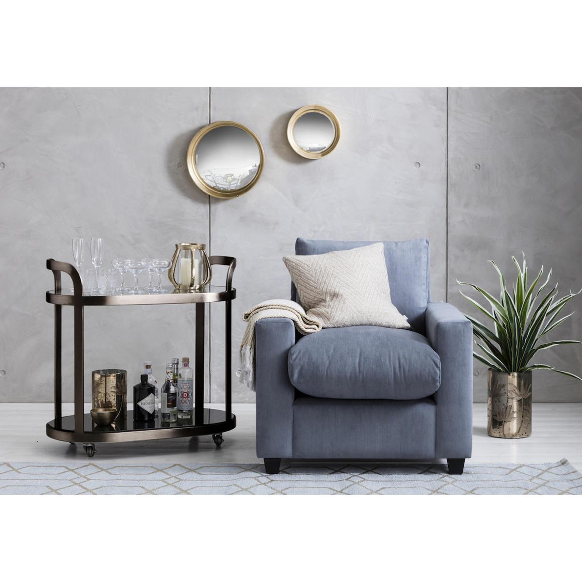 Sit back, relax and enjoy. Whether entertaining or just kicking back after a long day at work, the Margarita Bronze Drinks Trolley will fast become your go to spot in the house. Created with a lower deep granite shelf, rounded metal frame and of course on wheels, you couldn't ask for more. Place next to any one of our amazing sofas, armchairs or dining tables to complete the ideal living space.