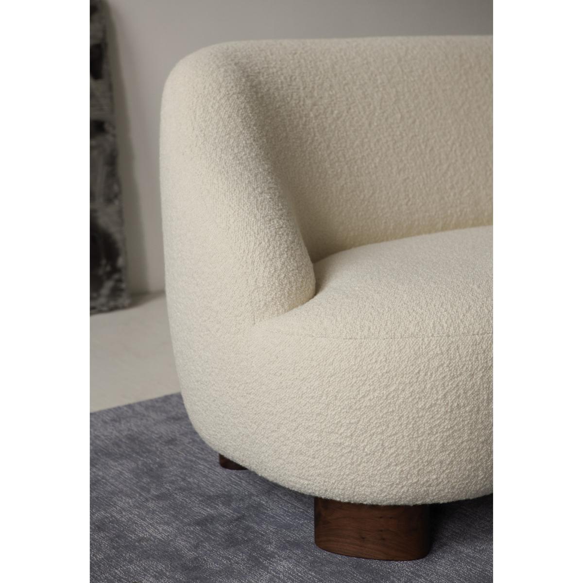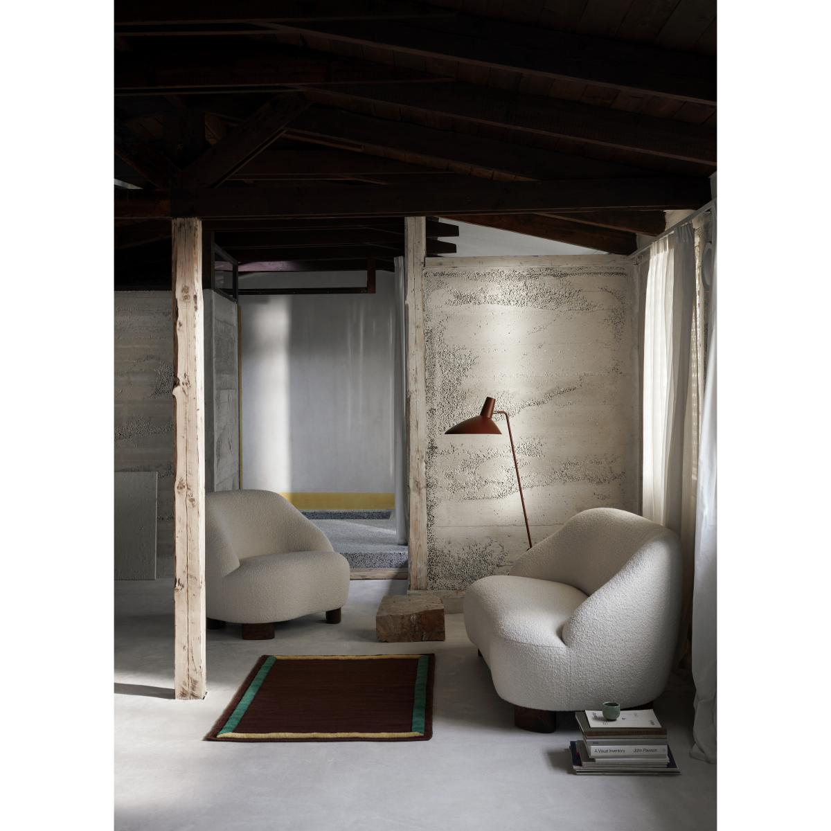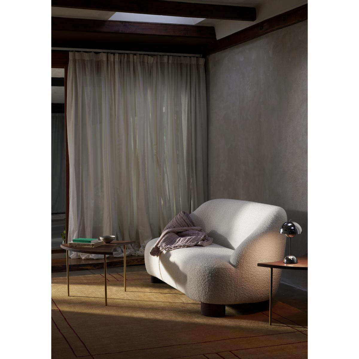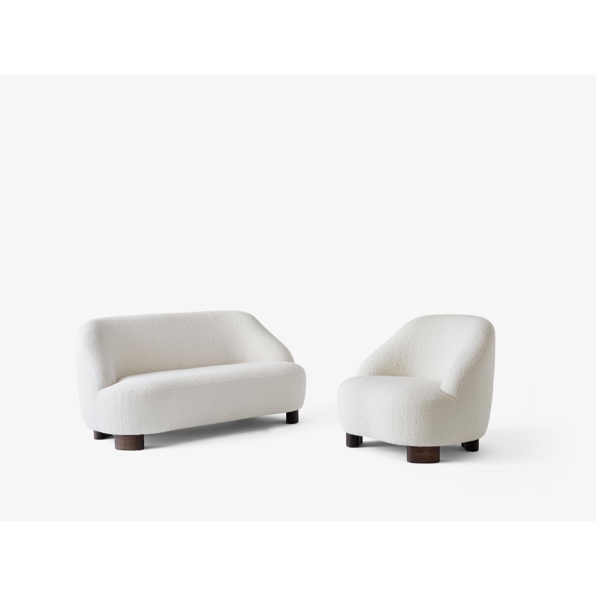 "Round and organic, the Marga 2-seater sofa combines design and craftsmanship. Its enveloping, refined shapes create perfect cocooning comfort. The softness of the shapes is highlighted and defined by the total absence of edges and by “haute-couture” details. The soft, woolly fabric was chosen to create an extraordinary tactile effect. Generous dimensions and soft padding: the Marga armchair ensures lasting comfort. The design of this armchair is notable for the quality of the material used and the great care given to its finishes. The wide rounded legs in solid walnut add a warm dimension. The Marga collection consists of an armchair, swivel armchair and sofa. Swedish designer Louise Liljencrantz named her collection after her beloved grandmother, Marga von Dardel, whom Liljencrantz considers the most important model in her life. “My grandmother was an amazing person. She was always in her chair by the window, smoking cigarettes. I came to visit her almost every week and we sat there talking for hours and hours. " Martin Kornbek Hansen, Founder and CEO of &Tradition: "Both contemporary and classic, the Margas collection reflects the remarkable talent of Louise Liljencrantz, her ability to transform an interior with extraordinary pieces. ".
