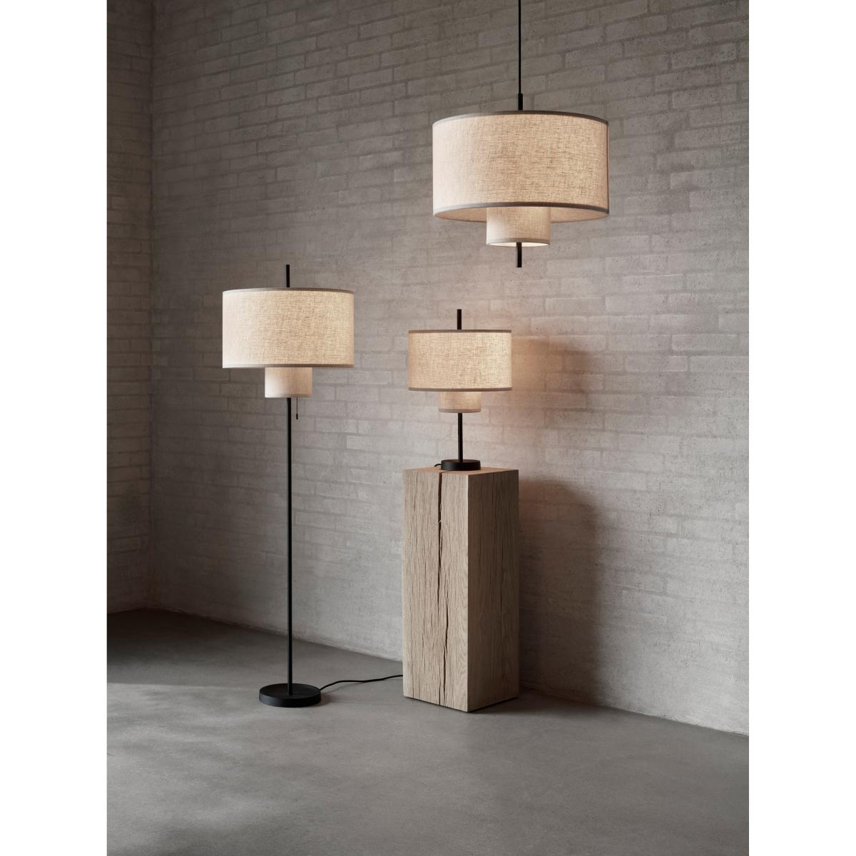 Margin ceiling lamp 50 cm from Danish New Works is a stylish lamp with double lampshades in canvas fabric that spread a soft and pleasant glow. The lamp is available in several sizes and looks lovely with the other lamps in the Margin collection.