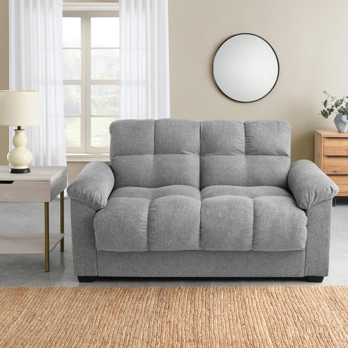 * Soft upholstery * Clic-clac mechanism * Under seat storage * Cup holders Designed with versatility in mind, this sofa bed offers a sleek and comfortable seating solution for any home. The adjustable backrest lets you choose from three reclining positions, transforming seamlessly from a supportive sofa to a cosy sleeping area. The spacious under-seat storage keeps extra bedding and cushions neatly stored away, making it ideal for guest rooms or smaller spaces.