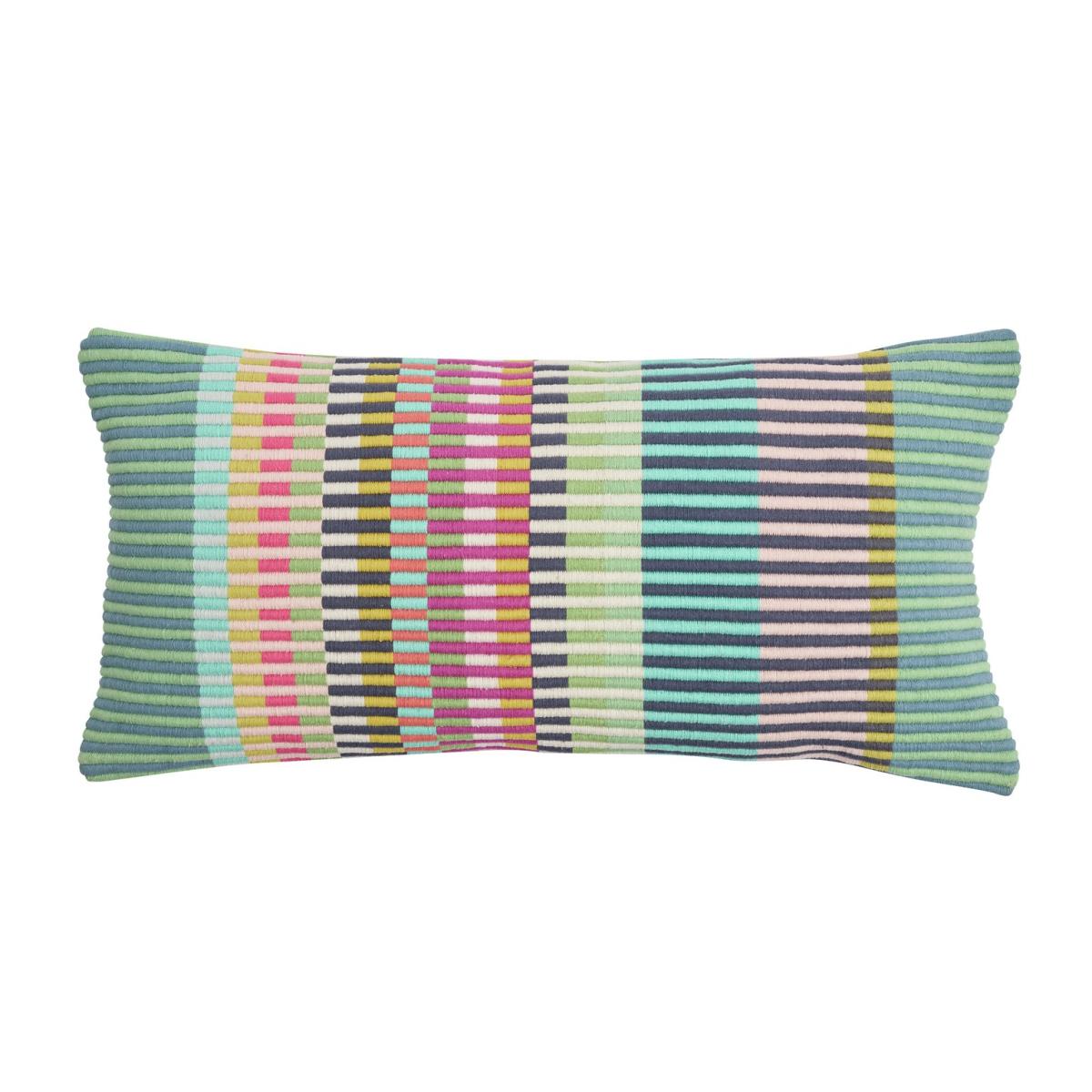 Our Buster cushion has been designed by Margo Selby, an award-winning British artist and textile designer. The cushion features a colourful interlocking stripe to create a vibrant and uplifting textural pattern. This signature print takes its name from Margo's grandpa, Buster, a pattern cutter on Saville Row. Designed by Margo Selby, exclusively for Habitat. Zip fastening. Cover 100% Cotton. Filling 100% Polyester,. Size L60, W30cm. This cover is spot clean only.