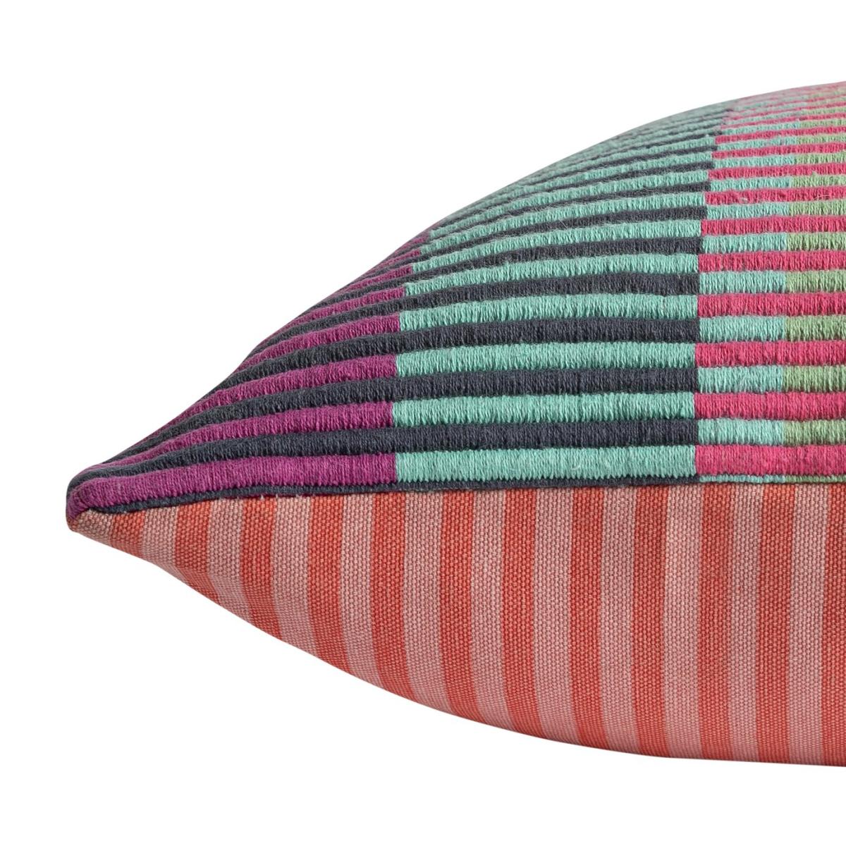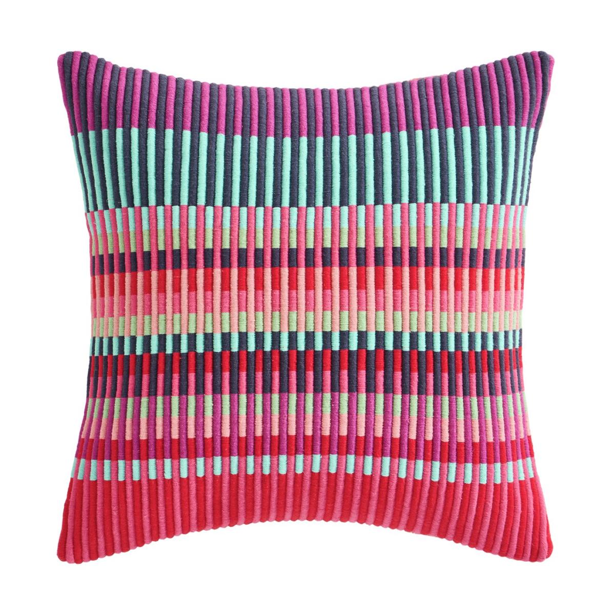 Our Buster cushion has been designed by Margo Selby, an award-winning British artist and textile designer. The cushion features a colourful interlocking stripe to create a vibrant and uplifting textural pattern. This signature print takes its name from Margo's grandpa, Buster, a pattern cutter on Saville Row. Designed by Margo Selby, exclusively for Habitat. Zip fastening. Cover 100% Cotton. Filling 100% Polyester,. Size L43, W43cm. This cover is spot clean only.