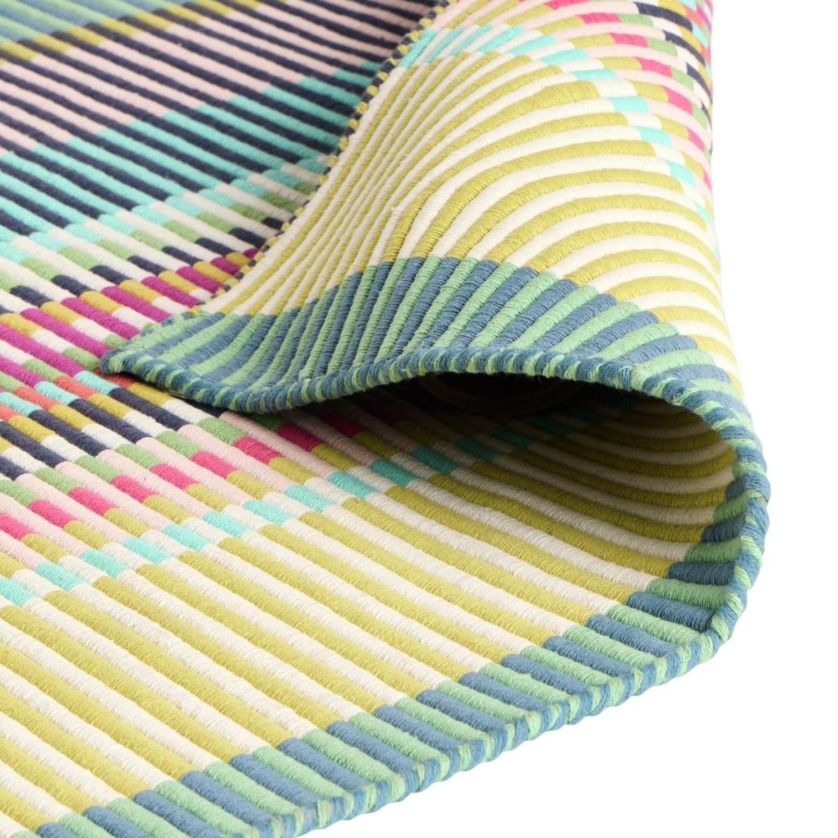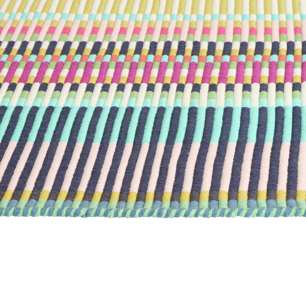 Our Buster floor runner has been designed by Margo Selby, an award-winning British artist and textile designer. It features a colourful interlocking stripe to create a vibrant and uplifting textural pattern. This signature print takes its name from Margo's grandpa, Buster, a pattern cutter on Saville Row. Designed by Margo Selby, exclusively for Habitat. Hand made. Made in India. 100% cotton. Spot clean only. Size of runner L200, W66cm. 2kg. Green stripe design.