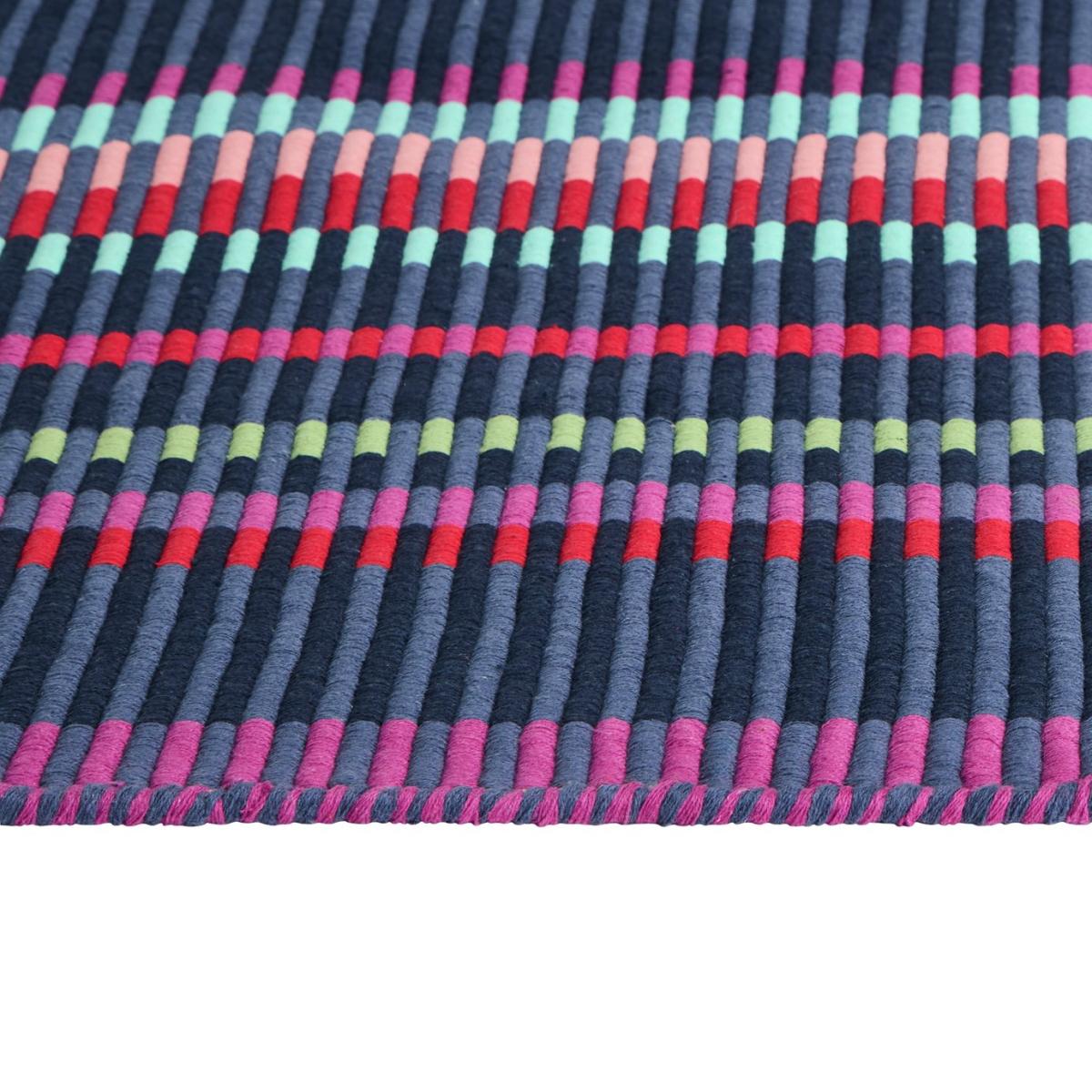 Our Buster rug has been designed by Margo Selby, an award-winning British artist and textile designer. It features a colourful interlocking stripe to create a vibrant and uplifting textural pattern. This signature print takes its name from Margo's grandpa, Buster, a pattern cutter on Saville Row. Designed by Margo Selby, exclusively for Habitat. Hand made. Made in India. 100% cotton. Spot clean only. Size L230, W160cm. 5.4kg. Red stripe design.