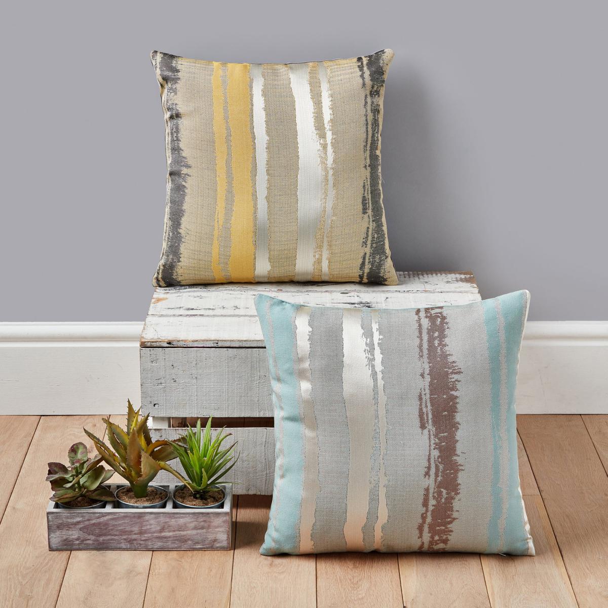 Designed with a woven texture and abstract linear paint brush effects in a sheen finish, this duck egg cushion cover is crafted from durable materials with a velvet reverse side. This cushion cover is suitable for a 45cm x 45cm insert.