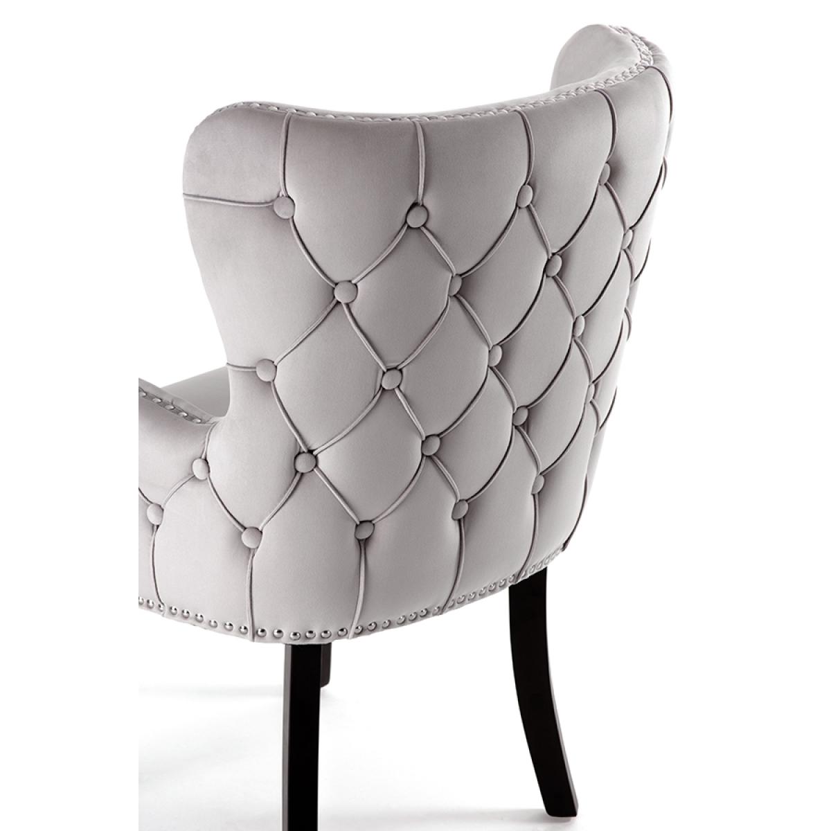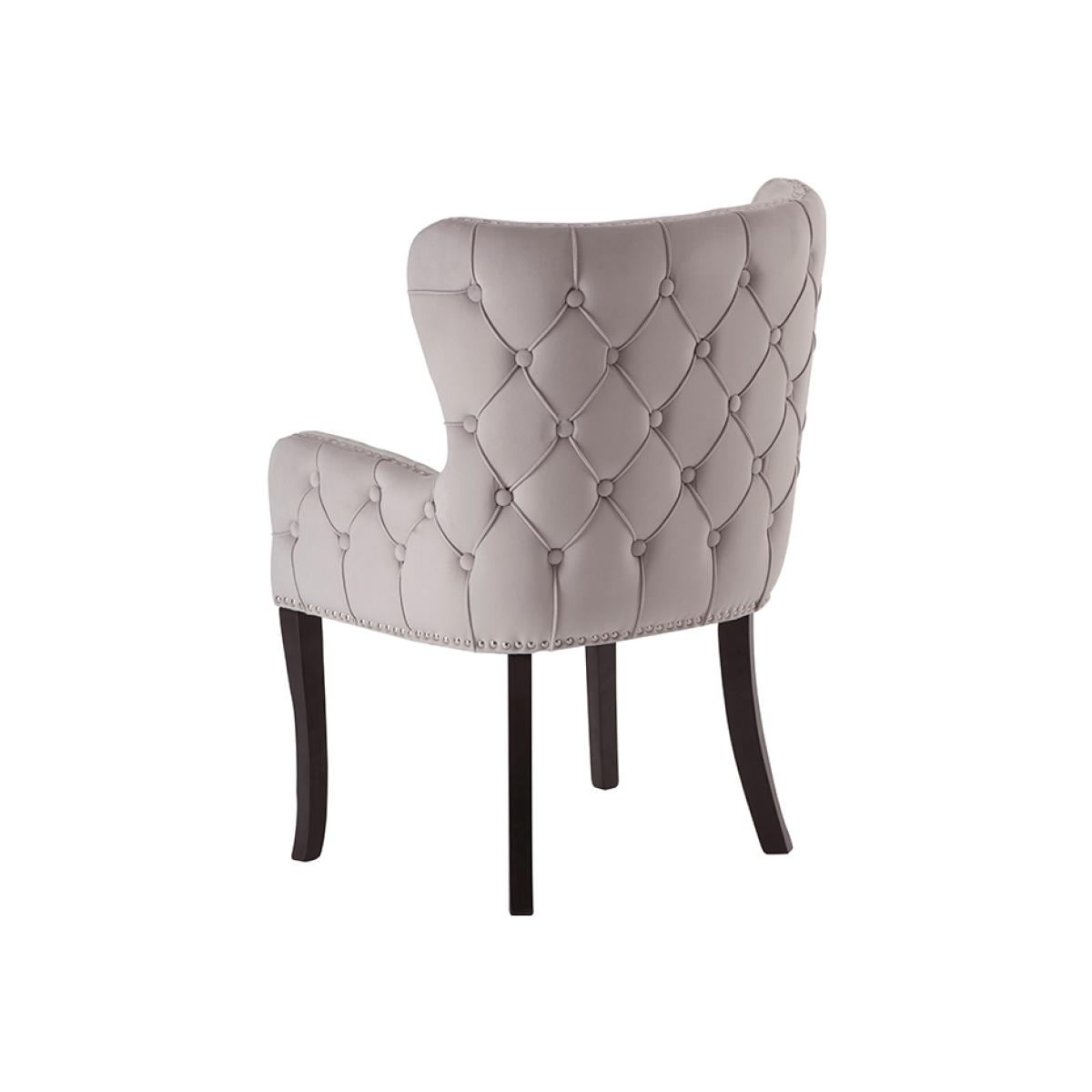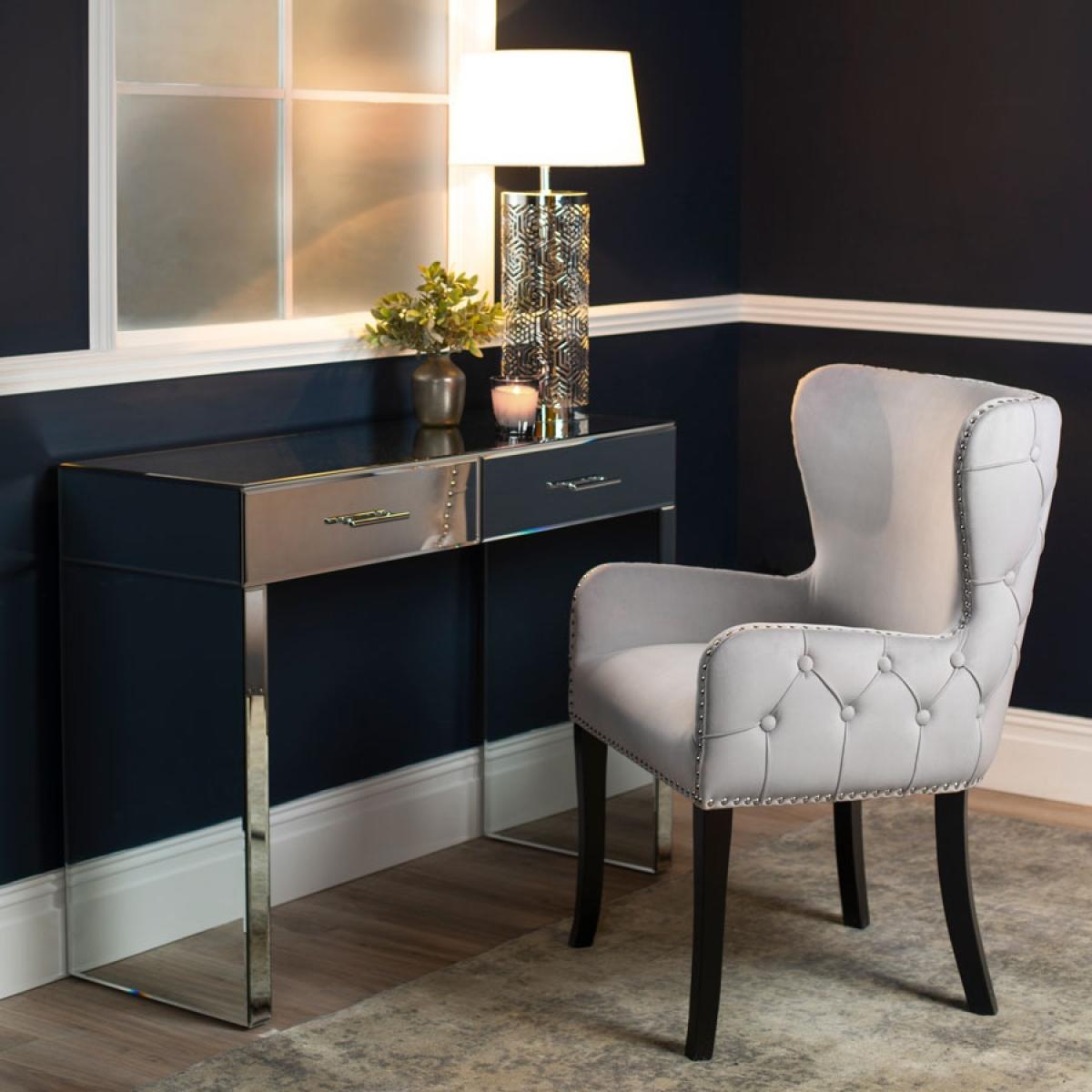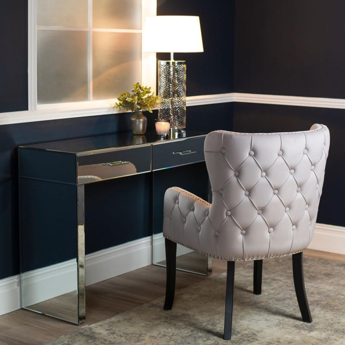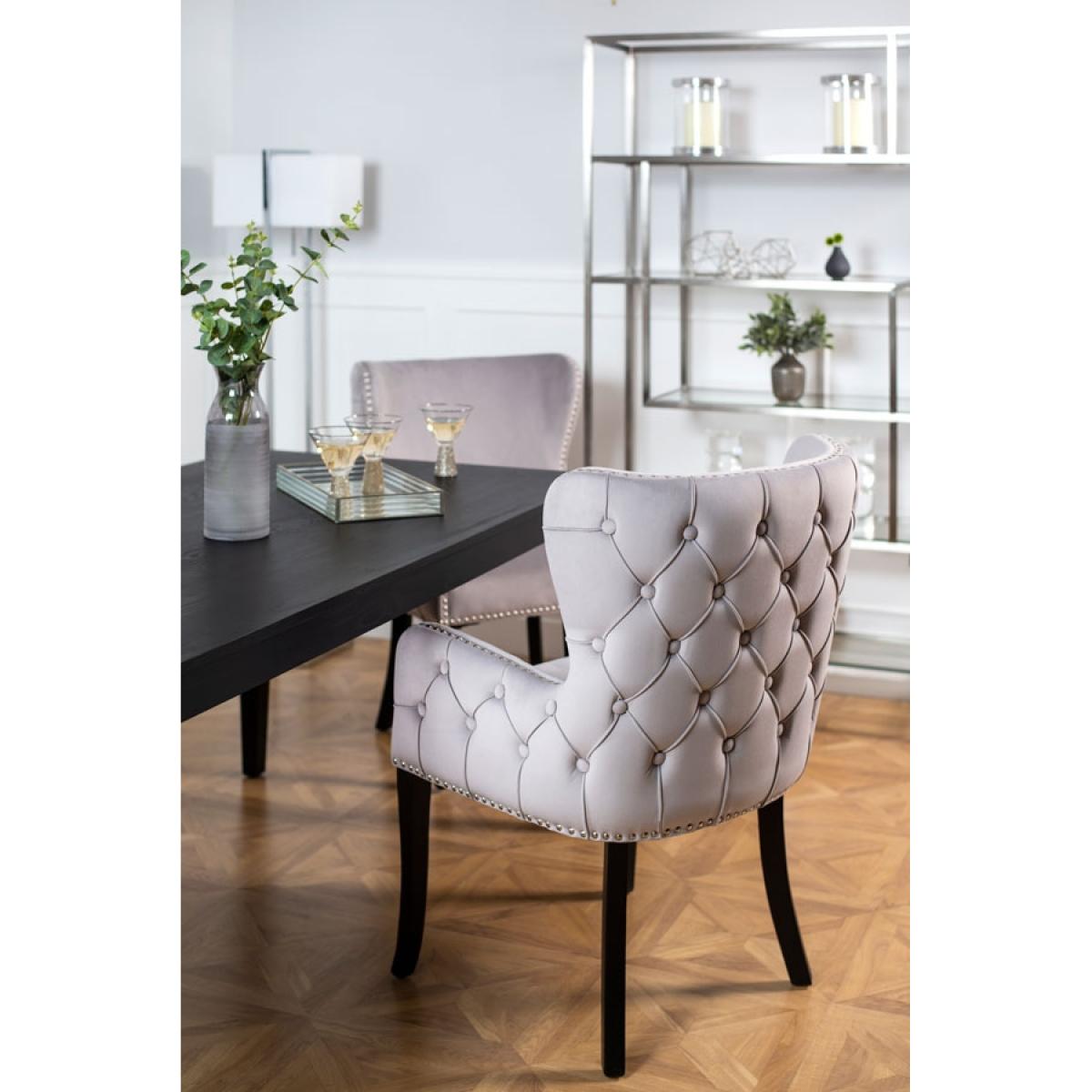 I love this chair for its elegant yet versatile design. The dove grey upholstery adds a soft, neutral touch that pairs well with both modern and traditional dining interiors. It works particularly well in sophisticated schemes, such as understated monochromes or pastel palettes, but can also provide a chic contrast in more eclectic spaces. Practical styling tips include using it around a round table for intimate dining or mixing with other textures and colours for a layered look. Its slightly curved back and tufted detail make it comfortable and visually interesting, making it a functional as well as an attractive choice for a dining room.