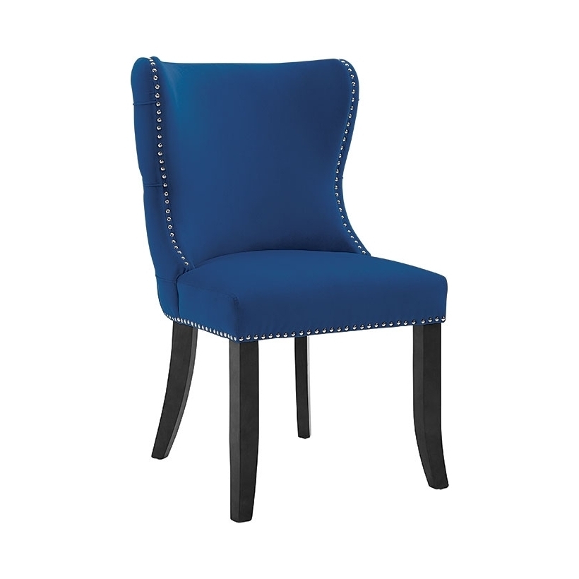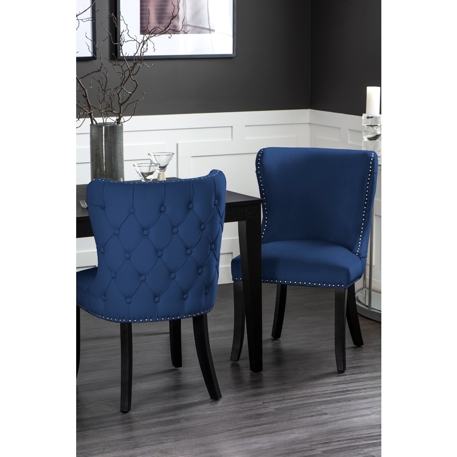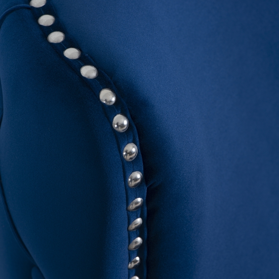 Distinctive buttoning to the back gives character to this elegant chair Finely tailored velvet upholstery with beautiful pinched pleat detailing and deep buttoning Comfortable foam seat with sprung webbing Minimal assembly required, simply attach legs Dimensions Height : 92 cm Width : 57 cm Depth: 65 cm Height from floor to the seat: 46 cm Require Part Assembly