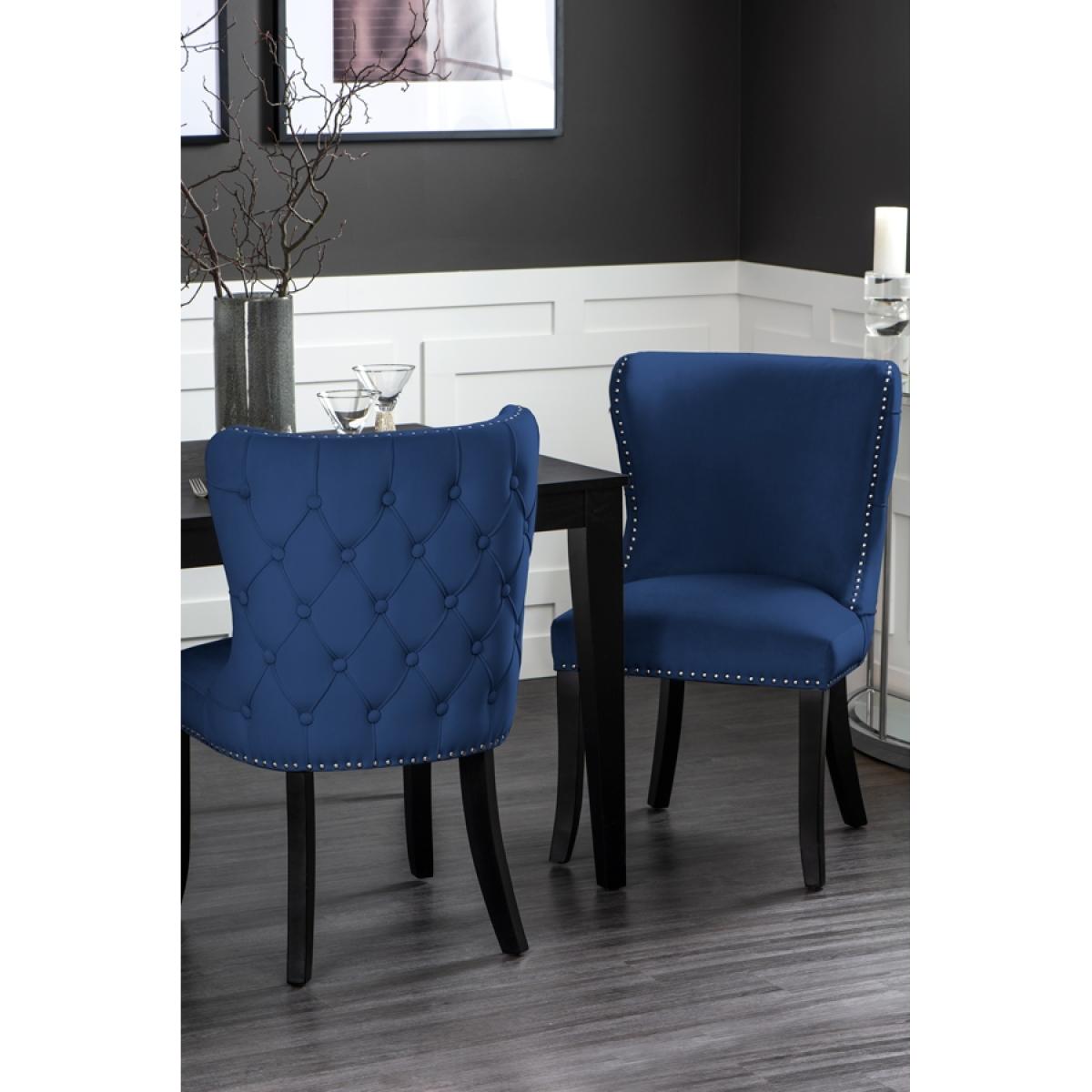 I’m a fan of the ink-blue dining chair for the way its rich velvet-style upholstery and button-tufted back bring depth to both modern and classic schemes. It works equally well in a neutral Scandi setting - where it becomes a focal accent - or paired with warm woods and brass details in a more traditional dining room. For styling, mix a couple of these blue chairs with two in soft grey or off-white at the ends of the table to keep things lively yet balanced. A simple patterned seat pad or slim linen cushion will add visual interest without hiding the chair’s detailing. To maintain that luxe finish, a weekly gentle brush and occasional fabric protector will keep the pile looking fresh.