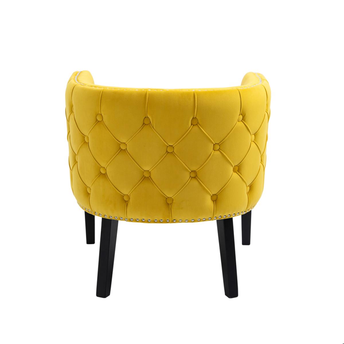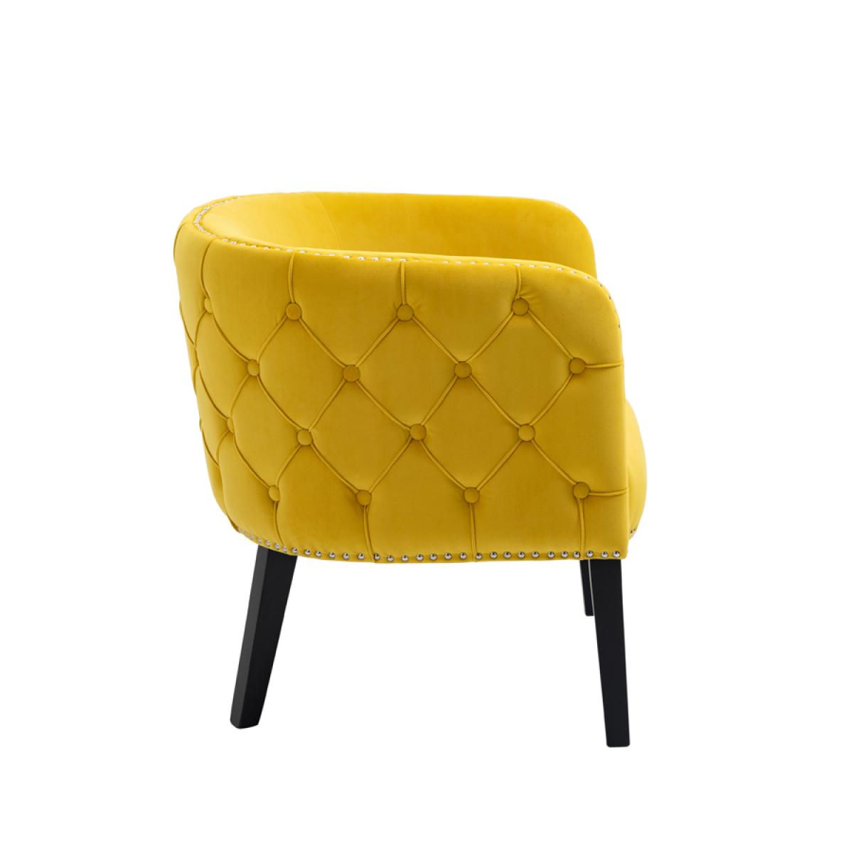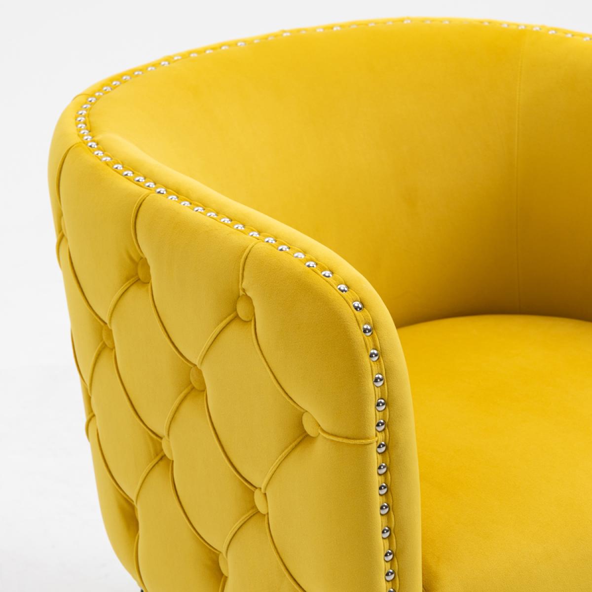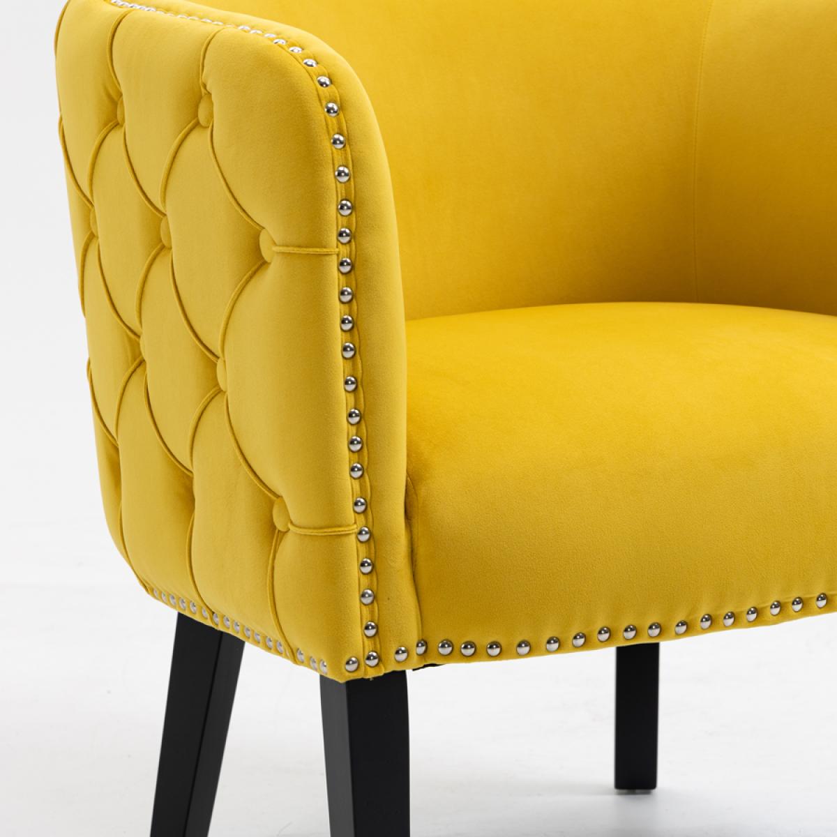 I love this mustard tub chair for its bold colour and inviting shape, making it a great statement piece in both modern and eclectic interiors. Its rounded silhouette and tufted detailing give it a cosy yet stylish vibe, perfect for adding warmth and personality to living rooms, bedrooms, or even a stylish home office. To style it effectively, consider pairing it with neutral or complementary colours such as grey, navy, or earthy tones to let the chair stand out. It also works well with layered textures-think soft throws or patterned cushions-to enhance its visual appeal. Keep its surroundings minimal for a sleek look, or mix in other accent pieces in similar bold hues for a vibrant, coordinated space.