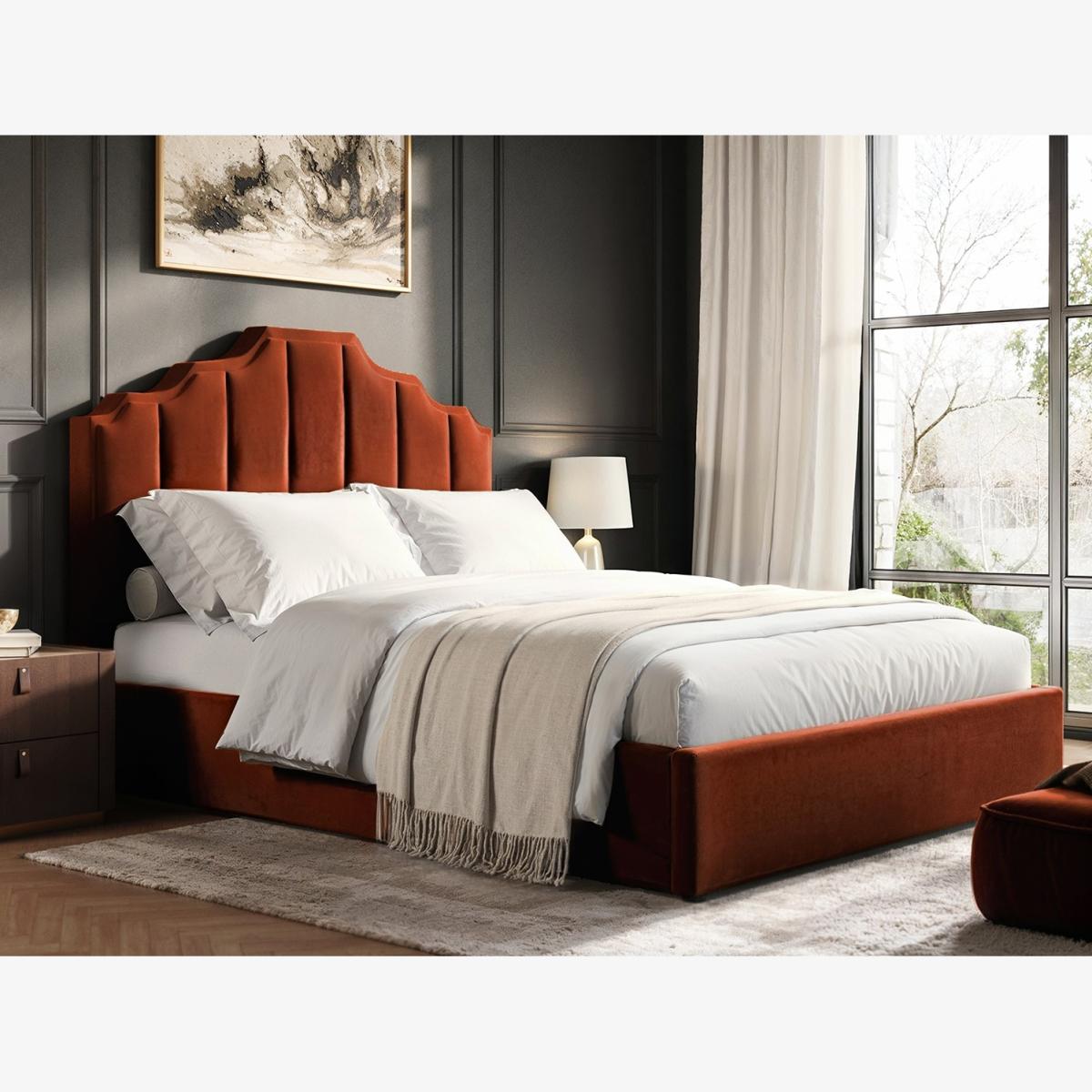 Margot Orange Velvet Ottoman Bed - Burnt Orange