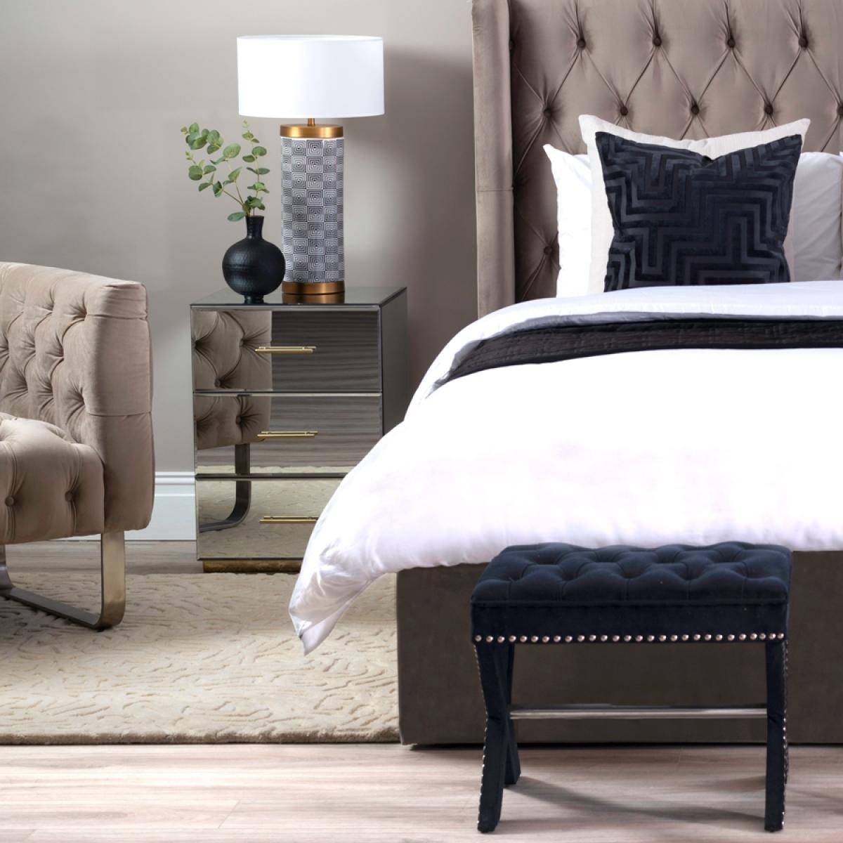 I love this little black stool for its versatility and stylish edge. Its sleek design makes it a great addition to a variety of interiors, from contemporary to more eclectic spaces. It works well as a footrest in a cosy corner, a seat for extra guests, or even as an organiser when paired with a tray on top. The dark upholstery paired with the decorative nailhead trim adds a touch of sophistication, making it suitable for living rooms, dressing areas, or bedrooms. Practical styling tips include mixing it with soft textiles for a relaxed look or using it as a contrast piece in a neutral scheme to add depth. Its robust design also means it’s functional and durable, making it a smart choice for everyday use.
