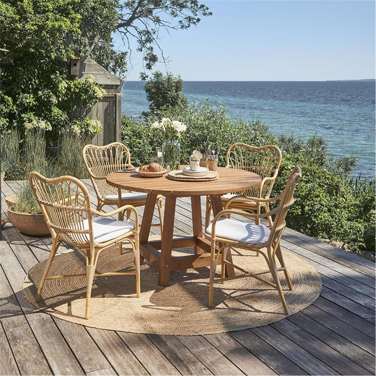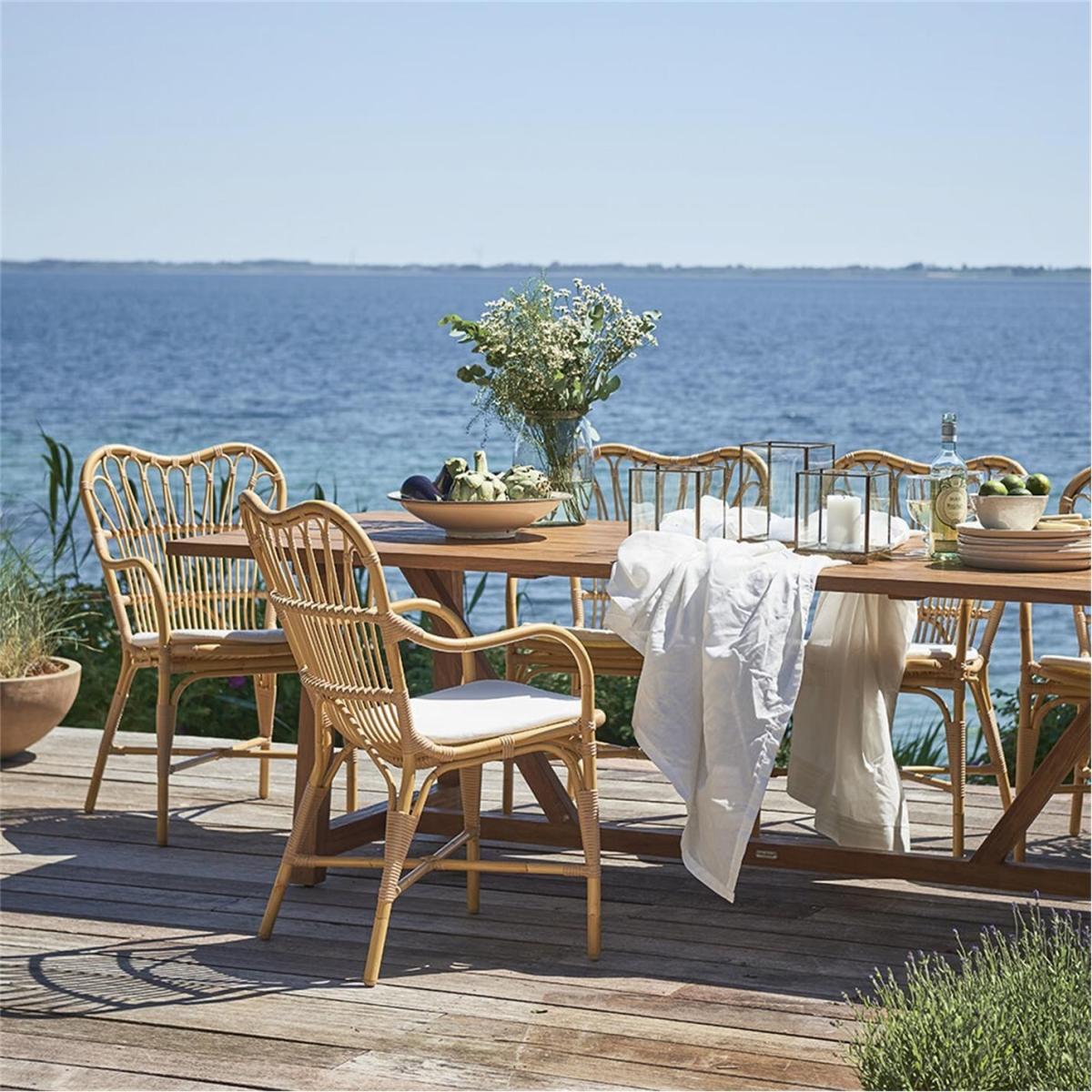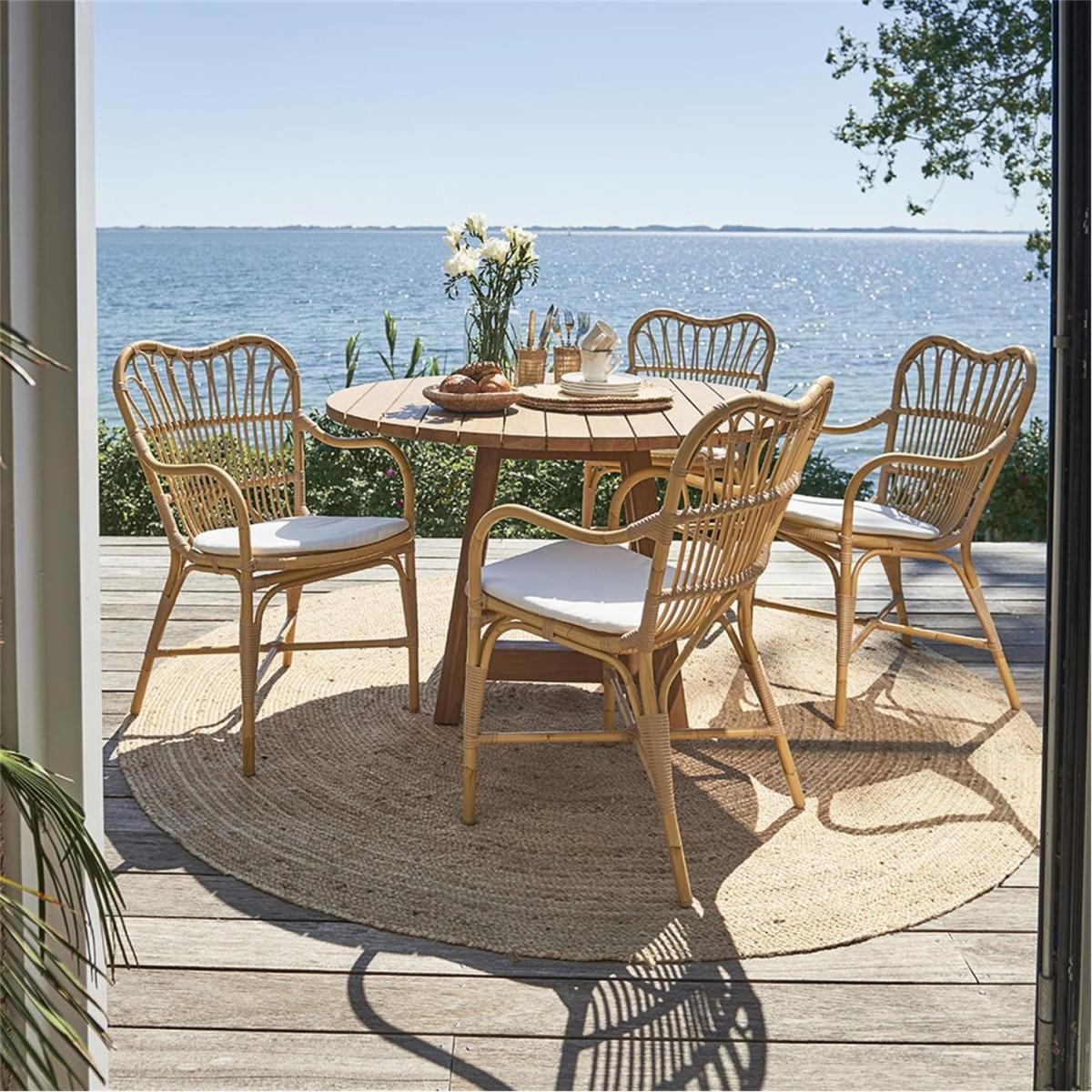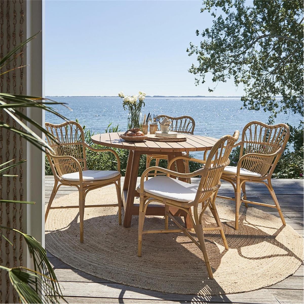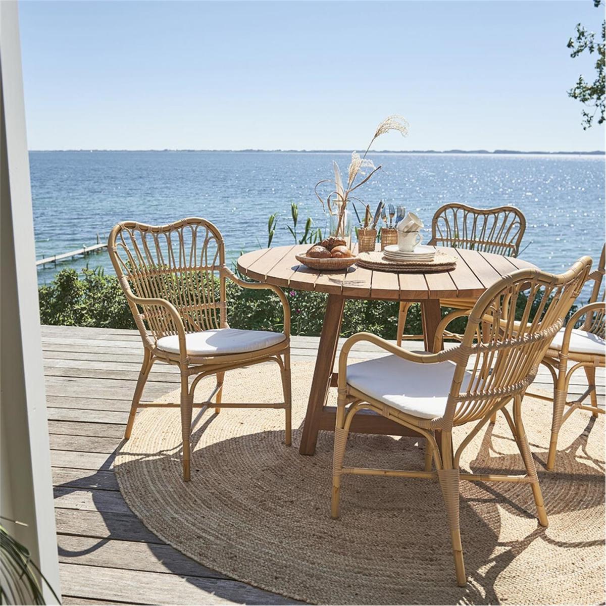 The Margaret Outdoor Dining Chair is crafted from Alu-Rattan and Art Fibre elements. Alu-Rattan is composed of powder-coated aluminium that is weather-resistant, while Art Fibre is an artificial fibre made of polyethene that is maintenance-free and can endure the sun's UV rays. The weather-resistant materials used in the chair's construction make it durable enough to withstand the elements all year long without requiring any upkeep.