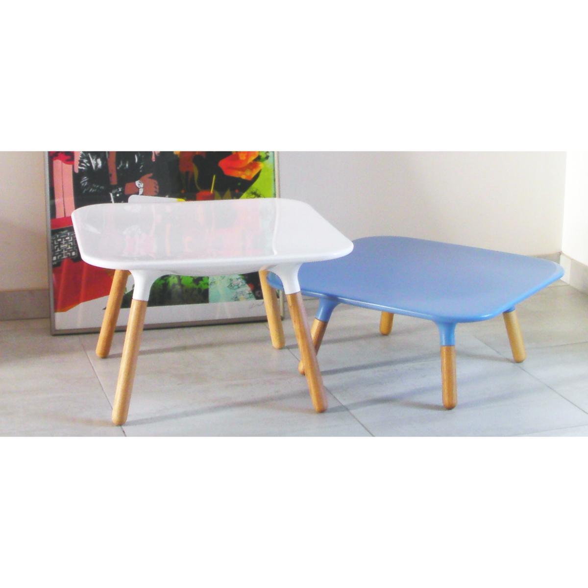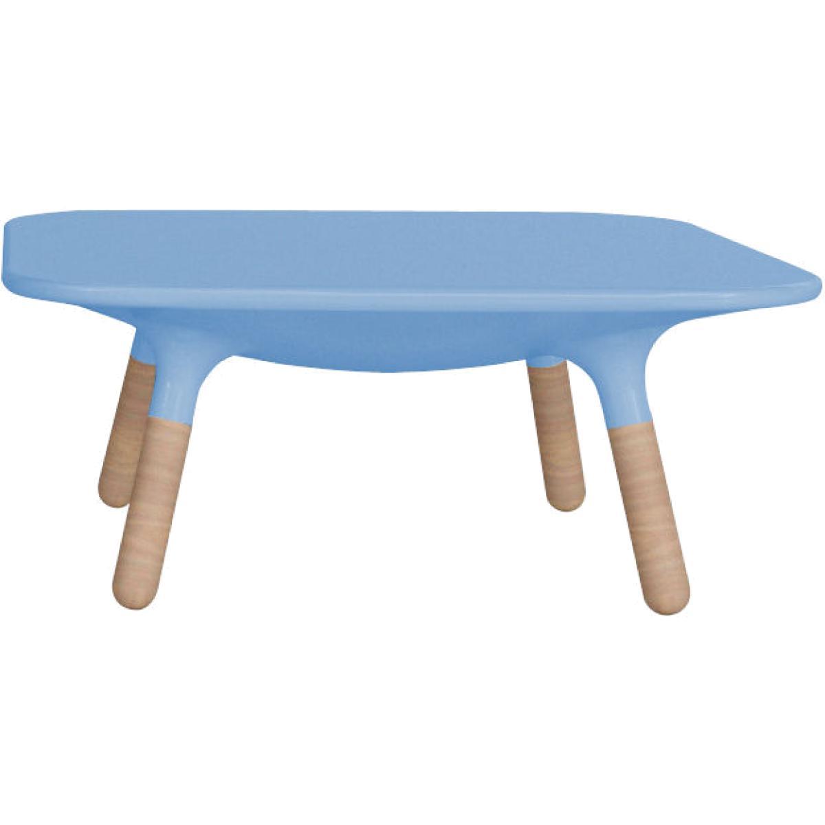 I love this little wooden coffee table for its playful shape and soft blue hue, which brings a refreshing touch to a variety of interiors. It's particularly versatile in modern, Scandinavian, or coastal-inspired spaces where its colour and simple form can really stand out. Practical styling tips include pairing it with neutral-toned sofas to let it be a focal point, or accessorising with a selection of books and ceramics for a curated look. Its low height makes it ideal for casual living rooms or as a centrepiece in a cosy corner, offering both functionality and charm.