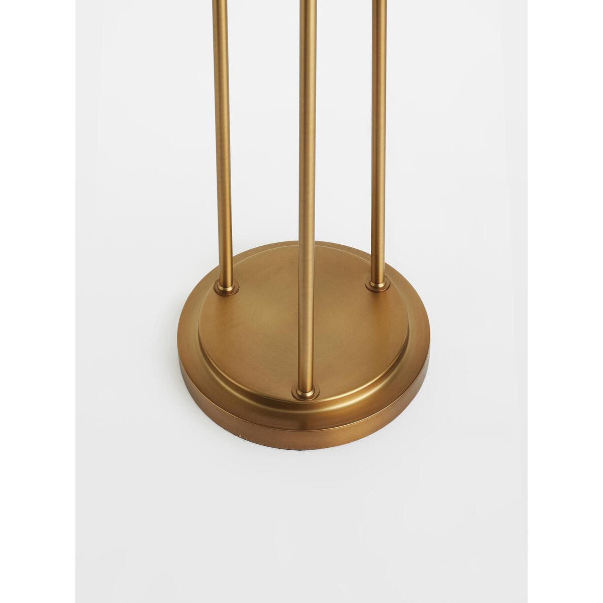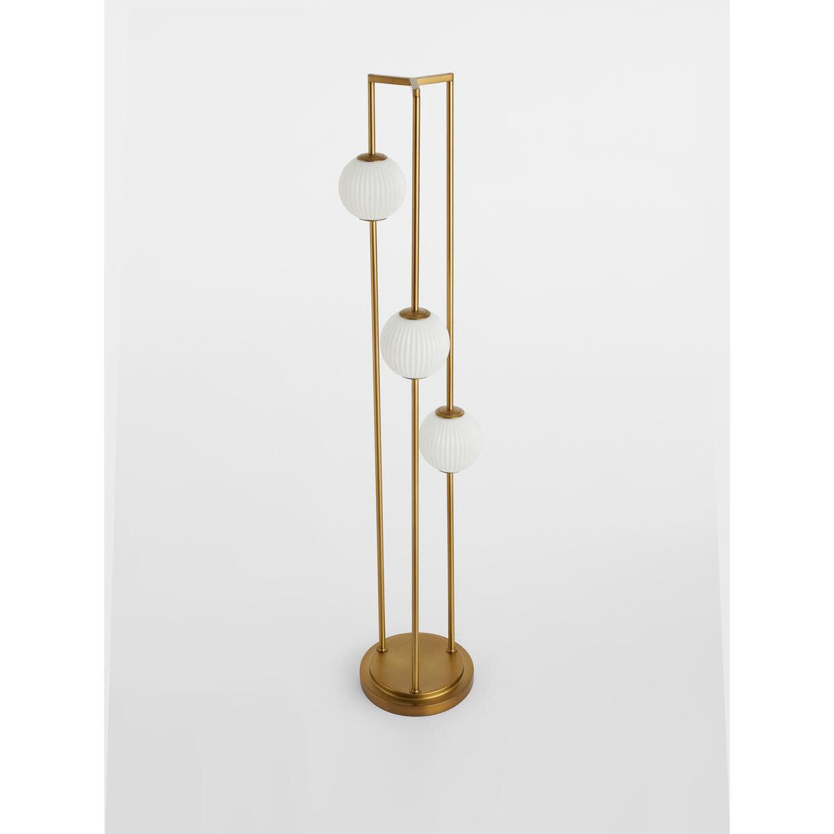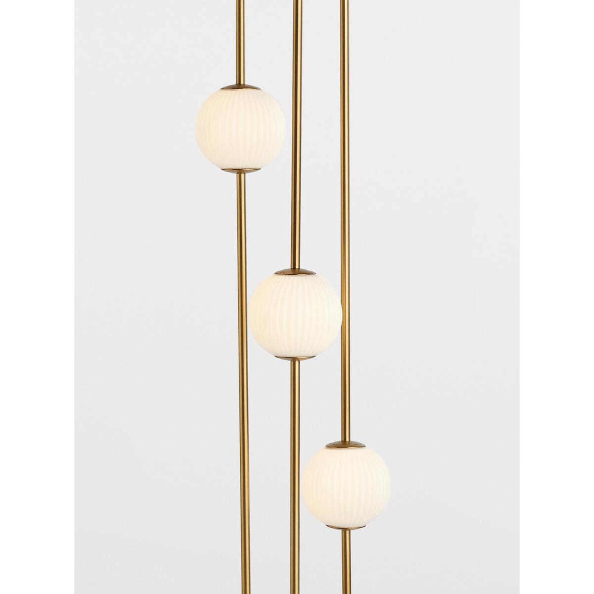 Reminiscent of the styles seen throughout Soho House Berlin, the Orion floor lamp is a structural piece, designed with three thin columns in an antique brass finish. It has white ribbed glass orbs that are fixed at different heights in the frame. Antique brass finish frame Three thin central columns Ribbed white glass Requires 1 x Standard E27 Golf Ball 410 bulb/ max 40W Inspired by Soho House Berlin