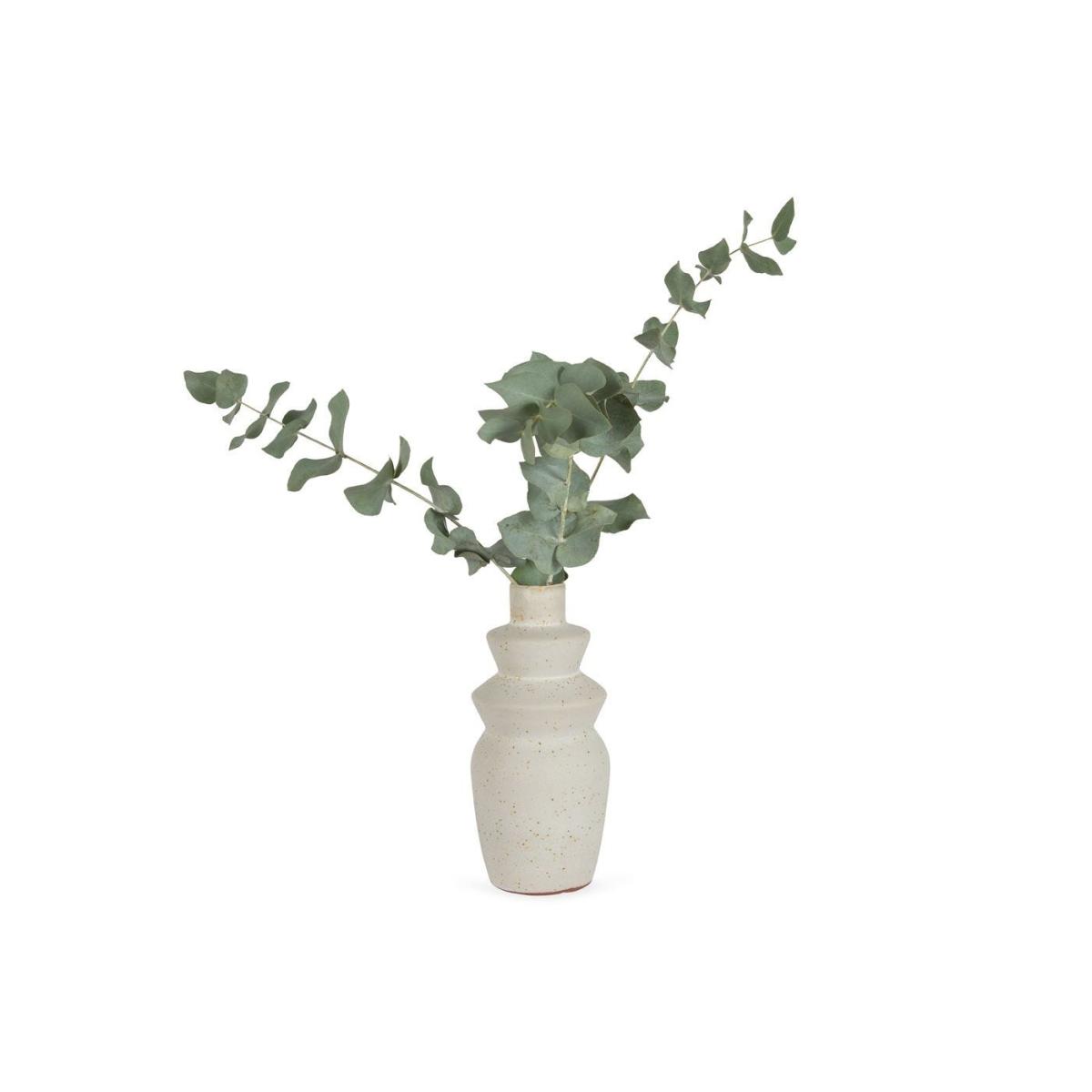 I love this vase because of its versatile, understated look that can elevate both modern and rustic interiors. Its neutral terracotta and white tones make it easy to incorporate into various colour schemes, while its chunky, geometric shape adds visual interest without overwhelming a space. It works particularly well on shelves, side tables, or as a statement piece on a mantel. Practical styling tips include filling it with dried blooms or greenery for colour and texture, or keeping it empty for a minimalist effect. This vase's understated elegance makes it a great all-rounder for creating moments of subtle sophistication in any room.